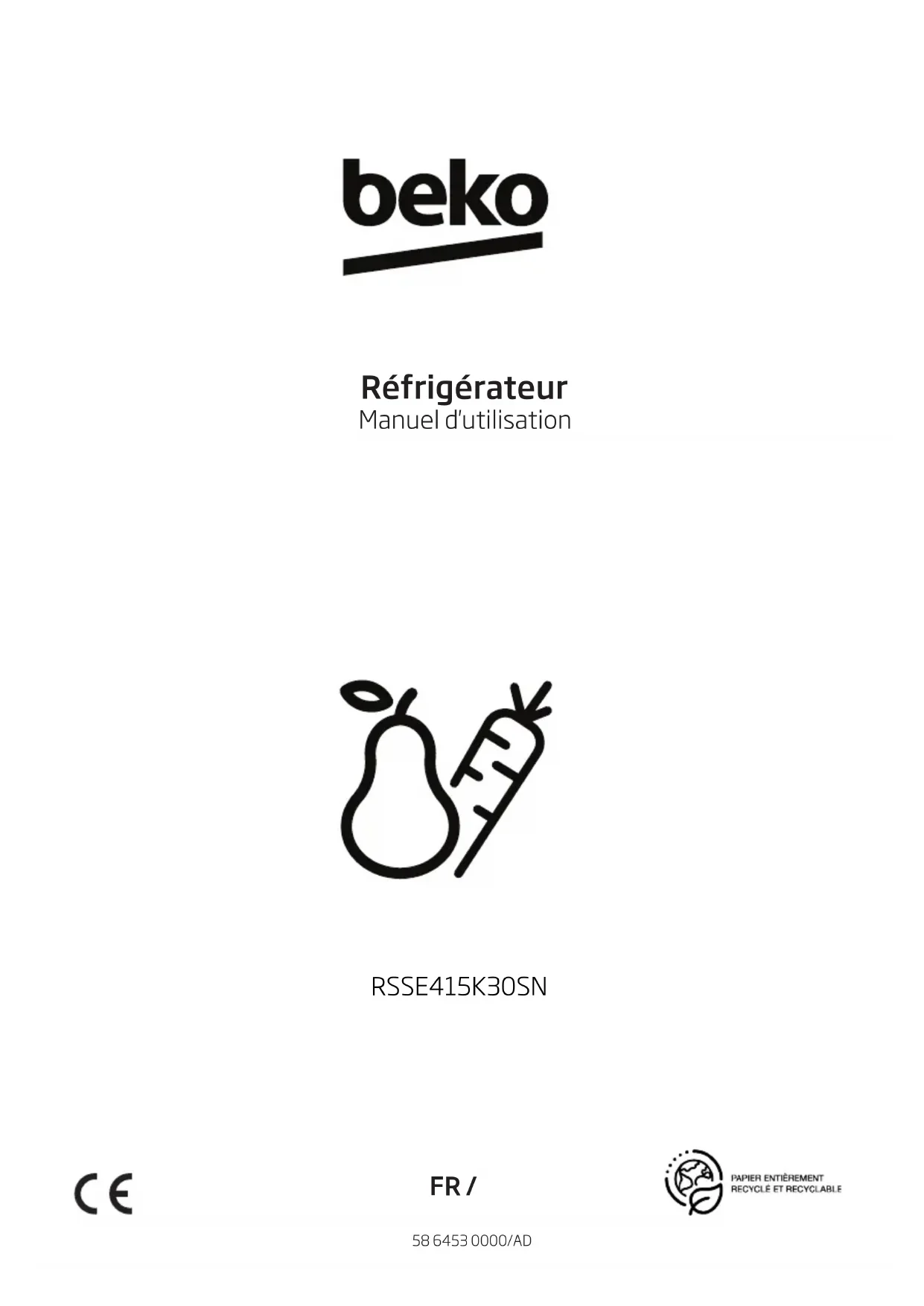 RSSE415K30SN - Réfrigérateur BEKO - Notice d'utilisation et mode d'emploi gratuit