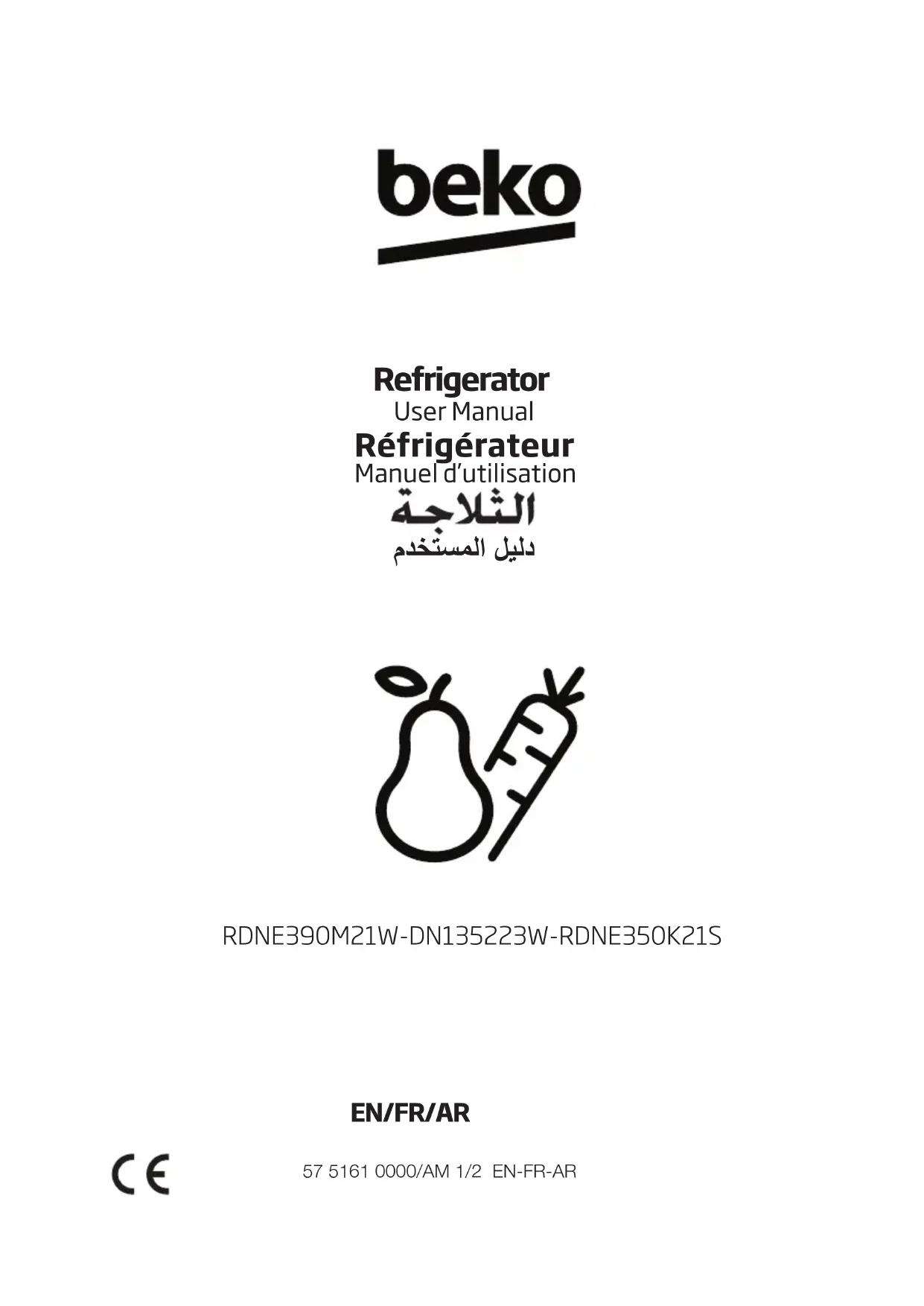 57 5161 0000/AM 1/2 EN-FR-AR Refrigerator User Manual Réfrigérateur Manuel d’utilisation