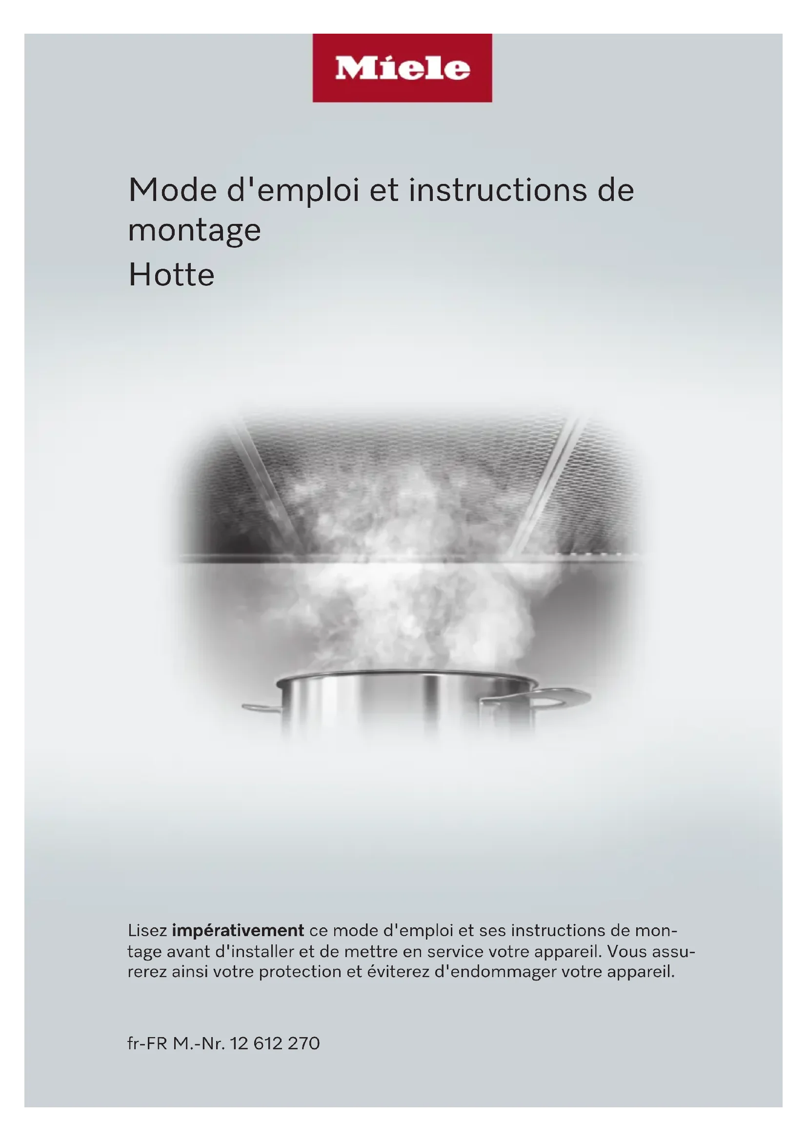 Mode d'emploi et instructions de montage Hotte Lisez impérativement ce mode d'emploi et ses instructions de mon- tage avant d'installer et de mettre en service votre appareil. Vous assu- rerez ainsi votre protection et éviterez d'endommager votre appareil. fr-FR M.-Nr. 12 612 270Table des matières