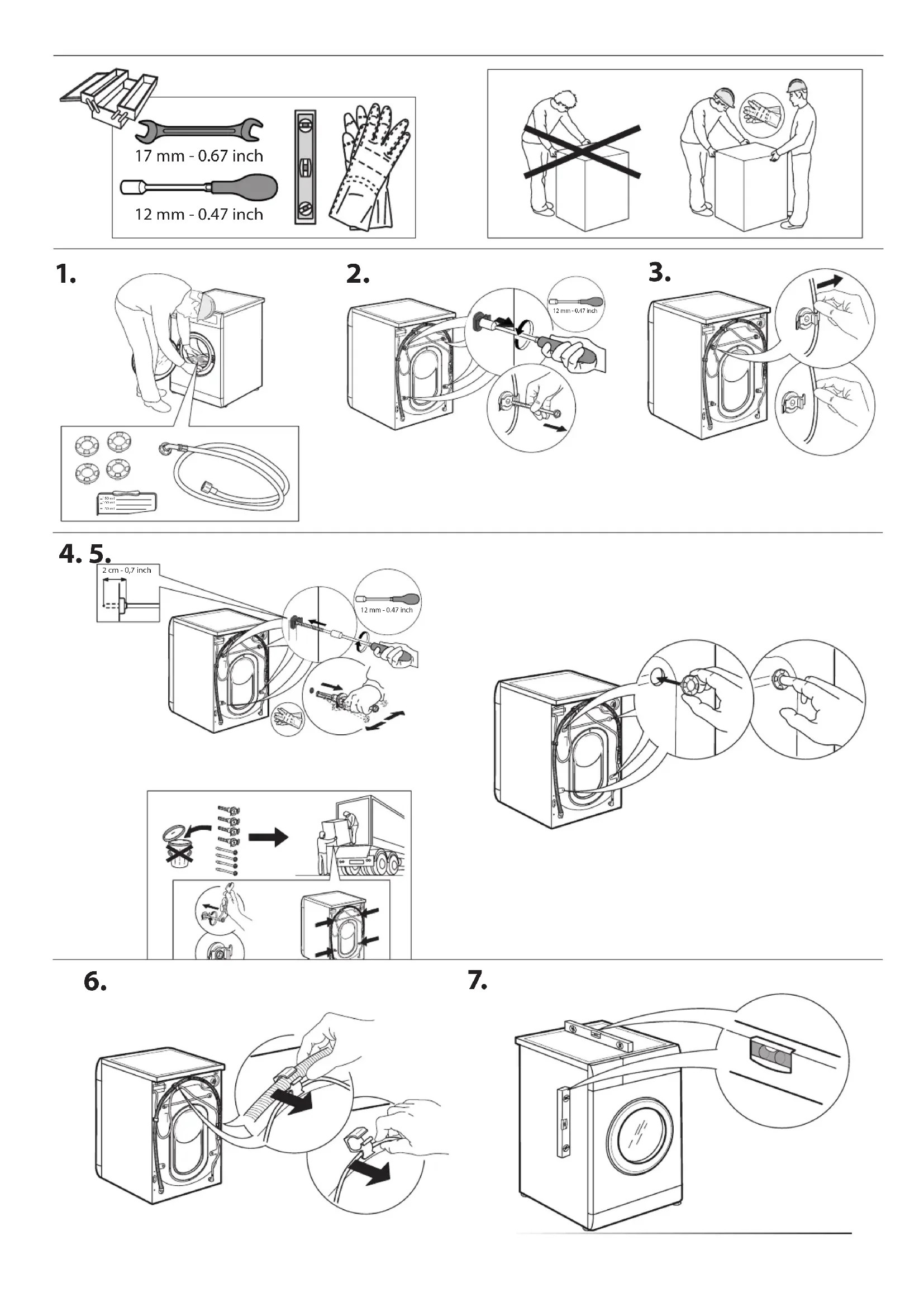 MISE EN GARDE : Cet appareil n’est pas conçu pour être utilisé avec un dispositif de mise en marche externe comme une minuterie ou un système de contrôle à distance. Cet appareil est destiné à un usage domestique et peut aussi être utilisé dans les endroits suivants : cuisines pour le personnel dans les magasins, bureaux et autres environnements de travail; dans les fermes; Par les clients dans les hôtels, motels, chambres d’hôtes, et autres résidences similaires;parties communes des immeubles ou des laveries. Ne chargez pas la machine au-delà de sa capacité maximale (kg de linge sec) indiquée dans le tableau des programmes. Cet appareil n’est pas conçu pour une utilisation professionnelle. N’utilisez pas l’appareil à l’extérieur. N’utilisez pas de solvants (par exemple térébenthine, benzène), de détergents contenant des solvants, de la poudre à récurer, de détergents pour vitre ou tout usage, ou de liquides inammables ; Ne lavez jamais des tissus imbibés avec du solvant ou des liquides inammables dans le lave-linge. INSTALLATION Deux personnes minimum sont nécessaires pour déplacer et installer l’appareil - risque de blessure. Utilisez des gants de protection pour le déballage et l’installation de l’appareil - vous risquez de vous couper. Si vous souhaitez installer un sèche-linge au-dessus de votre lave-linge, vériez d’abord si cela est possible auprès du Service après-vente ou de votre détaillant. Une telle installation nécessite la xation du sèche-linge sur le lave-linge à l’aide d’un kit de superposition adéquat, disponible auprès du Service après-vente ou de votre détaillant. Ne déplacez jamais l’appareil en le tenant par le dessus ou le couvercle. L’installation, incluant l’alimentation en eau (selon le modèle), et les connexions électriques, ainsi que les réparations, doivent être exécutées par un technicien qualié. Ne procédez à aucune réparation ni à aucun remplacement de pièce sur l’appareil autres que ceux spéciquement indiqués dans le guide d’utilisation. Gardez les enfants à l’écart du site d’installation. Après le déballage de l’appareil, assurez-vous qu’il n’a pas été endommagé pendant le transport. En cas de problème, contactez le détaillant ou le Service après- vente le plus proche. Une fois installé, gardez le matériel d’emballage (sacs en plastique, parties en polystyrène, etc.) hors de la portée des enfants - ils pourraient s’étouer. L’appareil ne doit pas être branché à l’alimentation électrique lors de l’installation - vous pourriez vous électrocuter. Au moment de l’installation, assurez-vous que le câble d’alimentation n’est pas endommagé par l’appareil - risque d’incendie ou de choc électrique. Branchez l’appareil seulement après avoir complété l’installation. N’installez pas votre appareil dans un endroit où il pourrait être exposé à des conditions extrêmes comme : mauvaise ventilation, température inférieure à 5°C ou supérieure à 35°C. Lors de l’installation de l’appareil, assurez-vous que les quatre pieds sont stables et reposent sur le sol, en les réglant si nécessaire, et vériez que l’appareil soit parfaitement de niveau en utilisant un niveau à bulle. Si l’appareil est installé sur des planchers en bois ou « ottants » (certains parquets et matériaux stratiés), xez une feuille de contreplaqué de 60 x 60 x 3 cm (au moins) sur le sol, puis placer l’appareil dessus. Raccordez les tuyaux d’alimentation en eau conformément aux réglementation de votre compagnie de distribution d’eau locale. Pour les modèles à remplissage à froid uniquement : Ne raccordez pas l’alimentation d’eau chaude. Pour les modèles avec arrivée d’eau chaude : la température de l’eau chaude à l’arrivée ne doit pas dépasser 60°C.Le lave-linge est doté d’écrous de transport destinés à éviter tout endommagement intérieur pendant le transport. Avant de mettre l’appareil en service, les boulons de transport doivent être impérativement retirés. Une fois cette opération terminée, bouchez les ouvertures à l’aide des 4obturateurs en plastique fournis. Après l’installation du dispositif, attendez quelques heures avant de le démarrer, an de l’acclimater aux conditions environnementales de la pièce. Assurez-vous que les bouches de ventilation à la base de votre lave-linge (selon le modèle) ne sont pas obstruées par de la moquette ou tout autre matériau. Utilisez uniquement de nouveaux tuyaux pour relier l’appareil à l’alimentation d’eau. Les anciens tuyaux ne doivent pas être réutilisés. La pression de l’eau doit être dans la gamme de 0,1-1 MPa. Ne réparez ou remplacez aucune pièce de l’appareil, si ce n’est pas spéciquement indiqué dans le manuel d’utilisation. Faites appel uniquement au Service après-vente agréé. Les réparations que vous eectuez vous-même ou que vous conez à une personne qui n’est pas un professionnel peuvent entraîner des incidents dangereux susceptibles de nuire à la santé des personnes, voire de mettre leur vie en danger, et/ou à des problèmes matériels importants. Les pièces détachées pour la machine à domicile seront disponibles pendant une durée de 10 ans après le lancement de la dernière unité sur le marché, conformément au règlement européen sur l’écoconception. ALIMENTATION ÉLECTRIQUE Il doit être possible de débrancher l’appareil de l’alimentation électrique en retirant la che de la prise de courant si elle est accessible, ou à l’aide d’un interrupteur multipolaire en amont de la prise de courant, conformément aux normes de sécurité électrique nationales. utilisez pas de rallonge, de prises multiples ou d’adaptateurs. Une fois l’installation terminée, l’utilisateur ne doit plus pouvoir accéder aux composantes électriques. N’utilisez pas l’appareil si vous êt
