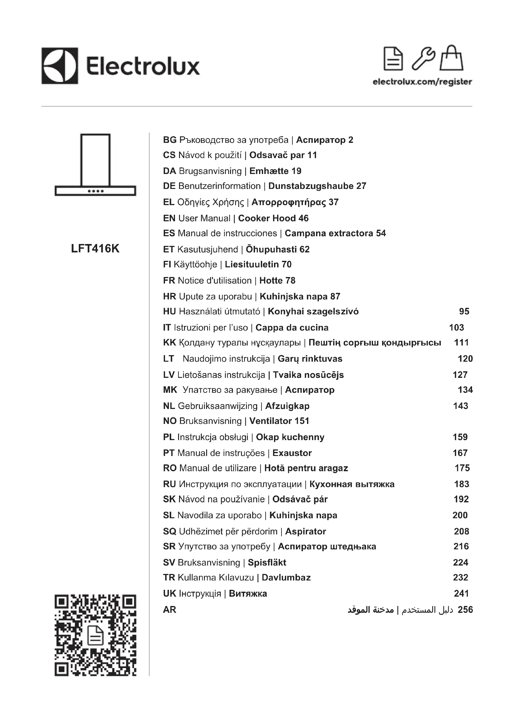 LFT416K - Hotte ELECTROLUX - Notice d'utilisation et mode d'emploi gratuit