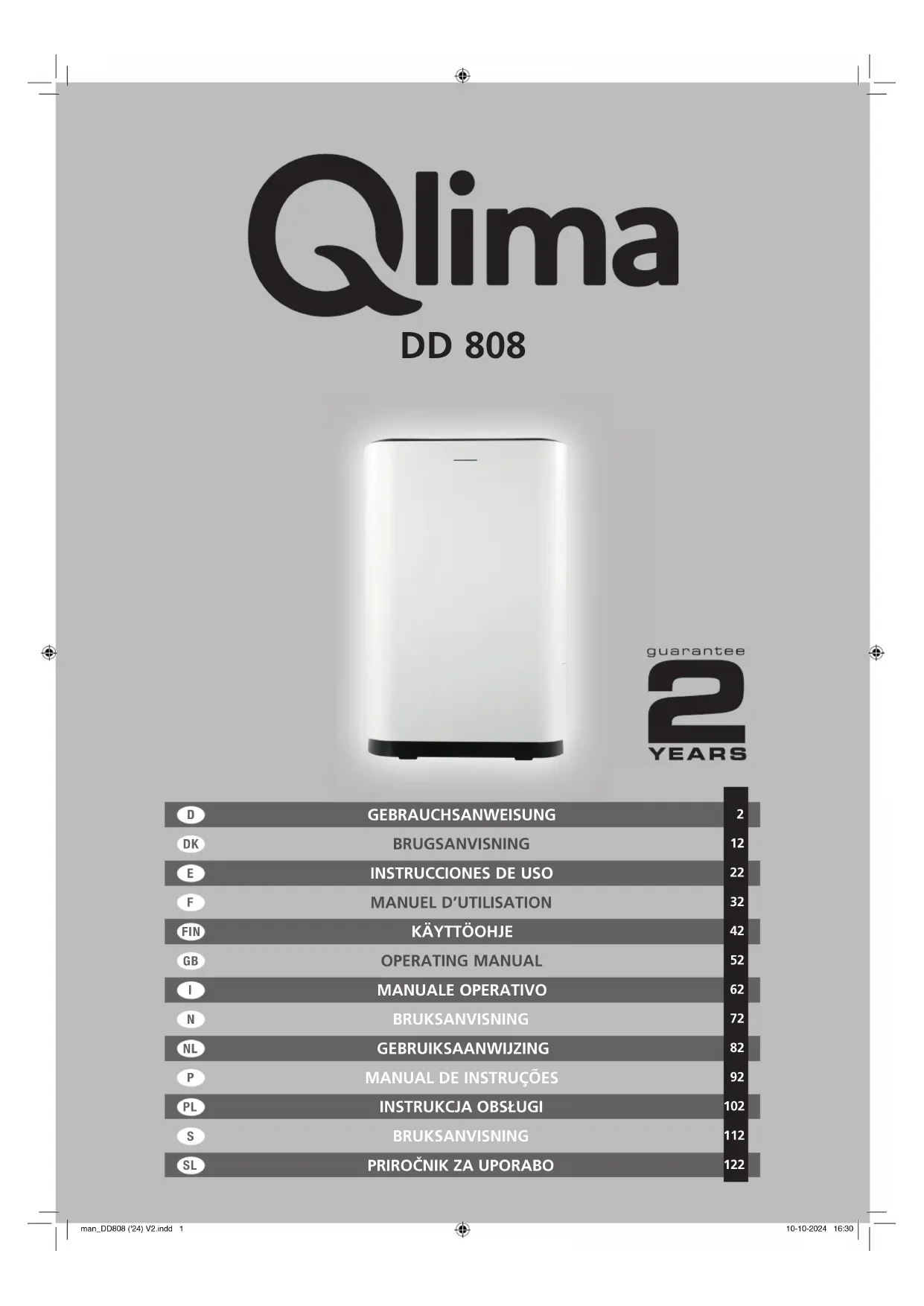 Retrouvez gratuitement la notice de l'appareil DD 808 QLIMA au format PDF.