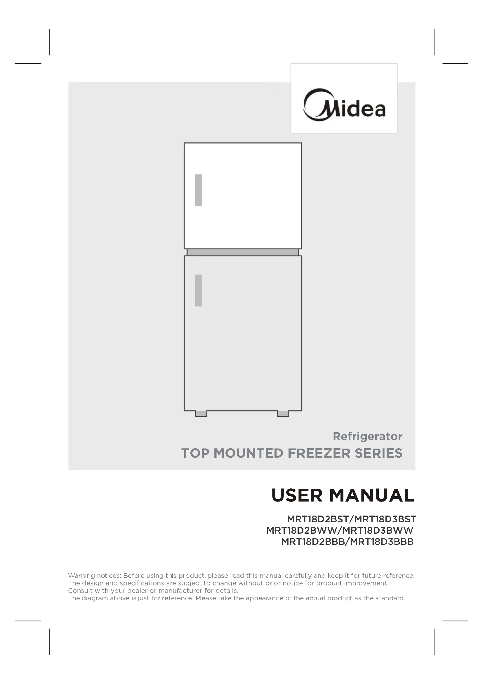 MRT18D3BWW - Réfrigérateur MIDEA - Notice d'utilisation et mode d'emploi gratuit