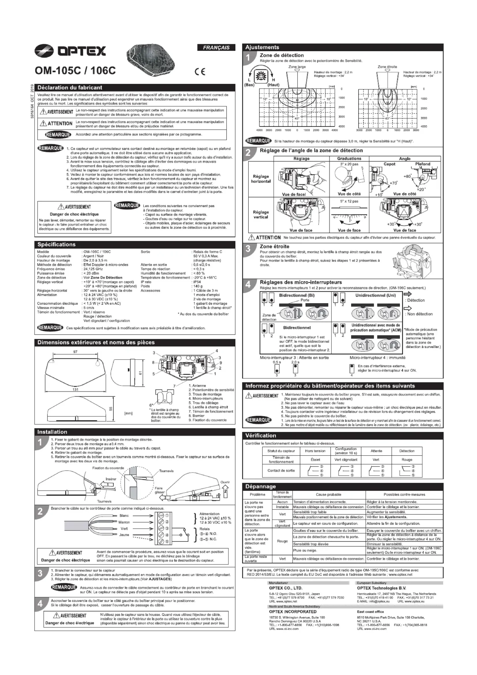 Retrouvez gratuitement la notice de l'appareil OM-105C OPTEX au format PDF.