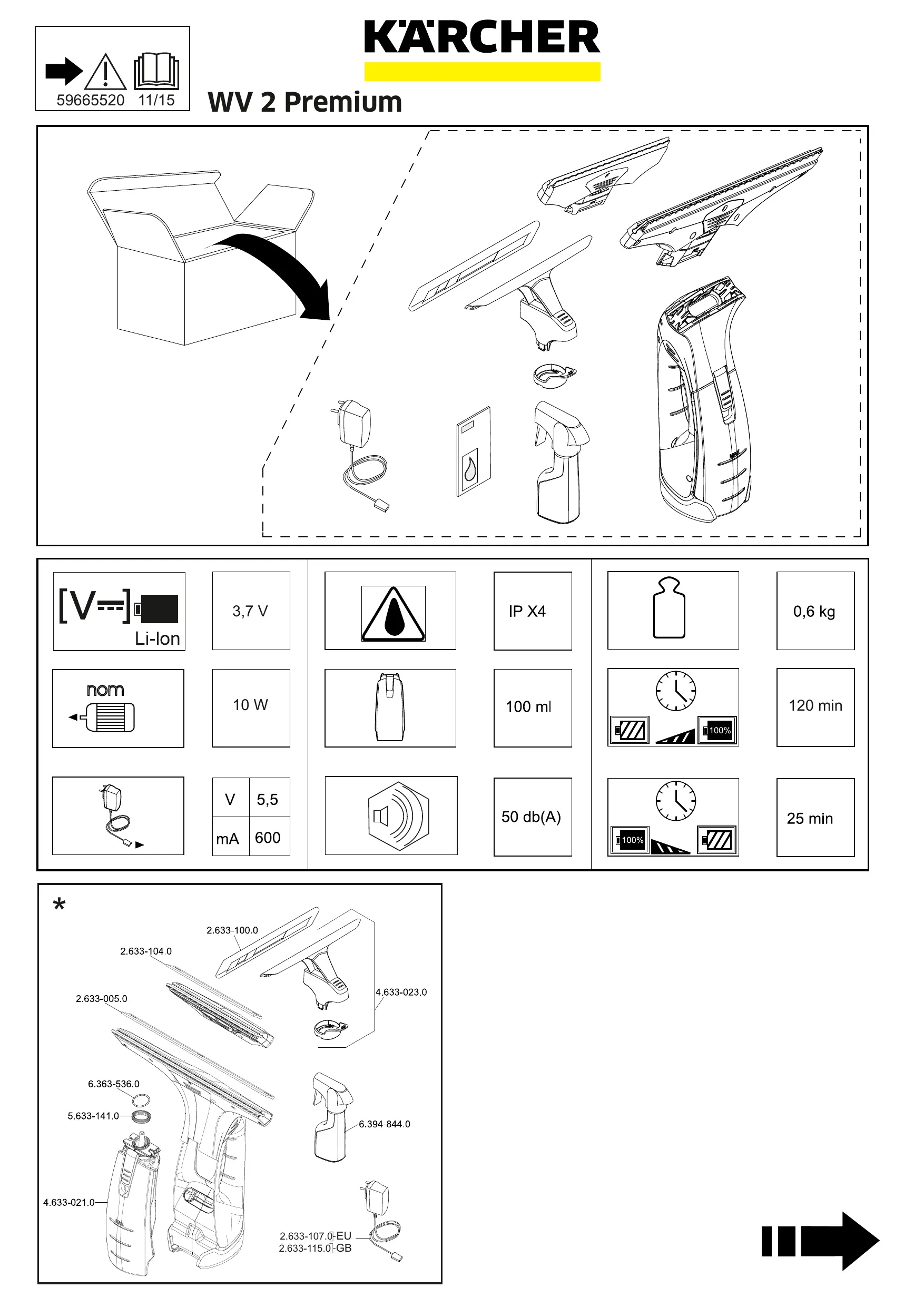 Retrouvez gratuitement la notice de l'appareil WV 2 PREMIUM KARCHER au format PDF.