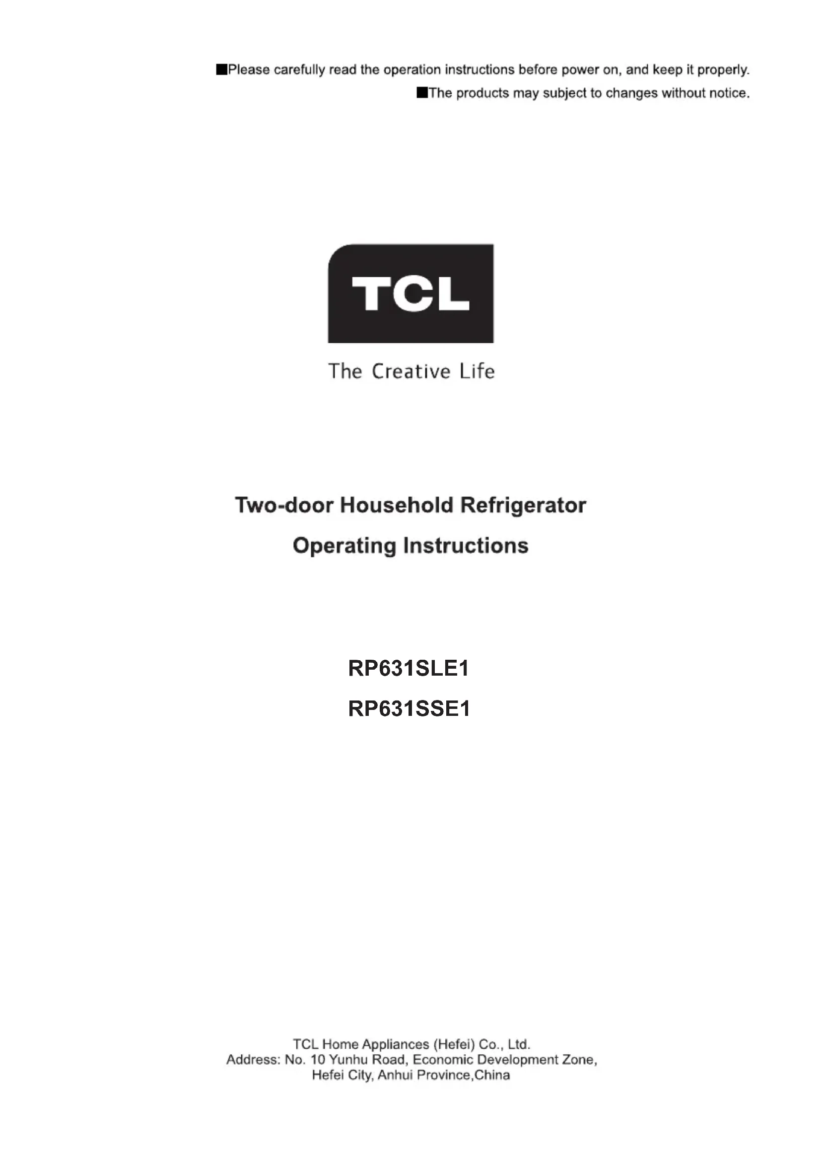 RP631SLE1 - Réfrigérateur TCL - Notice d'utilisation et mode d'emploi gratuit