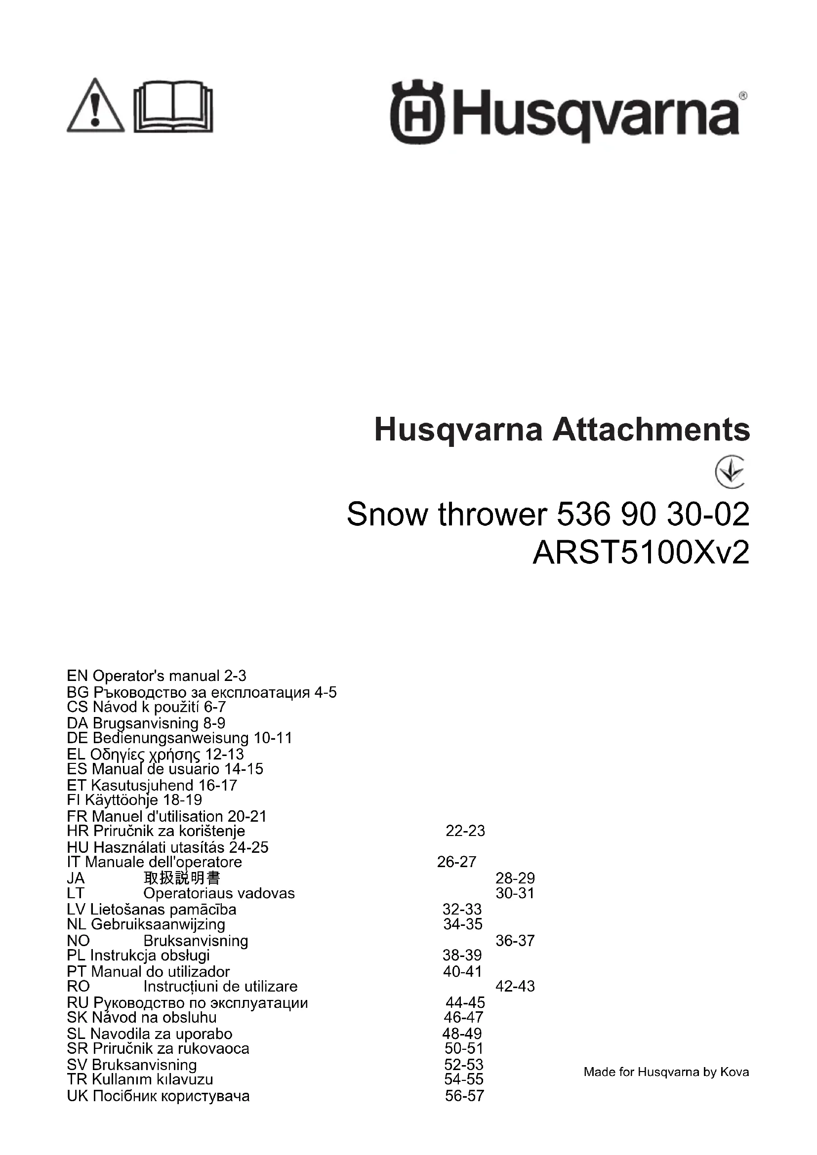 ARST5120v2 - Souffleur à neige HUSQVARNA - Notice d'utilisation et mode d'emploi gratuit