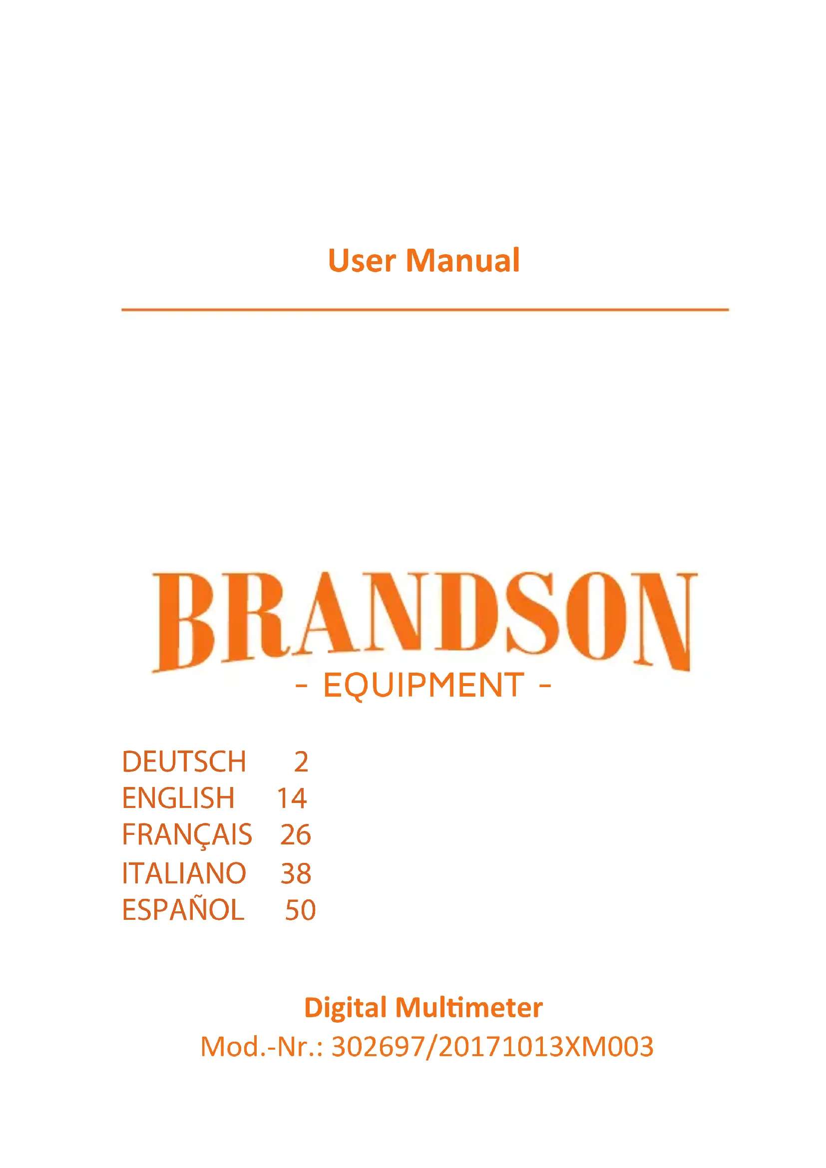 Téléchargez la notice de votre Multimètre au format PDF gratuitement ! Retrouvez votre notice 302697 - Brandson et reprennez votre appareil électronique en main. Sur cette page sont publiés tous les documents nécessaires à l'utilisation de votre appareil 302697 de la marque Brandson.