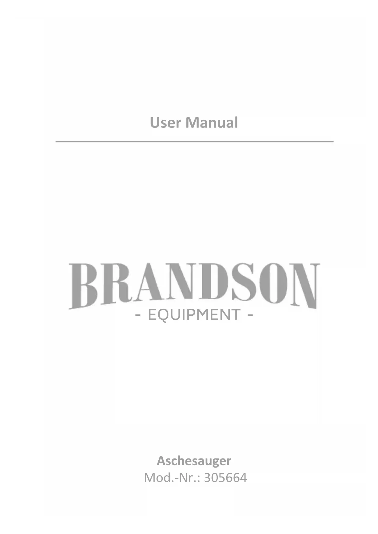 - Assurez-vous de ne pas aspirer des par- es du corps ou des cheveux ! Ulisaon conforme L’aspirateur à cendres est adapté uniquement à l’aspiraon de cendres sèches susamment refroidies et de saletés sèches. La foncon de souerie de l’appareil peut être ulisée pour le neoyage de large surfaces et pour allumer un feu en exterieur. Ulisez cet appareil exclusivement pour votre usage personnel. Il n'est pas conçu pour l'usage commercial.31Français Nous vous remercions d’avoir choisi un produit Brandson. Pour que vous puissiez proter longtemps de l’appareil acquis, veuillez lire aenvement le mode d’emploi suivant.