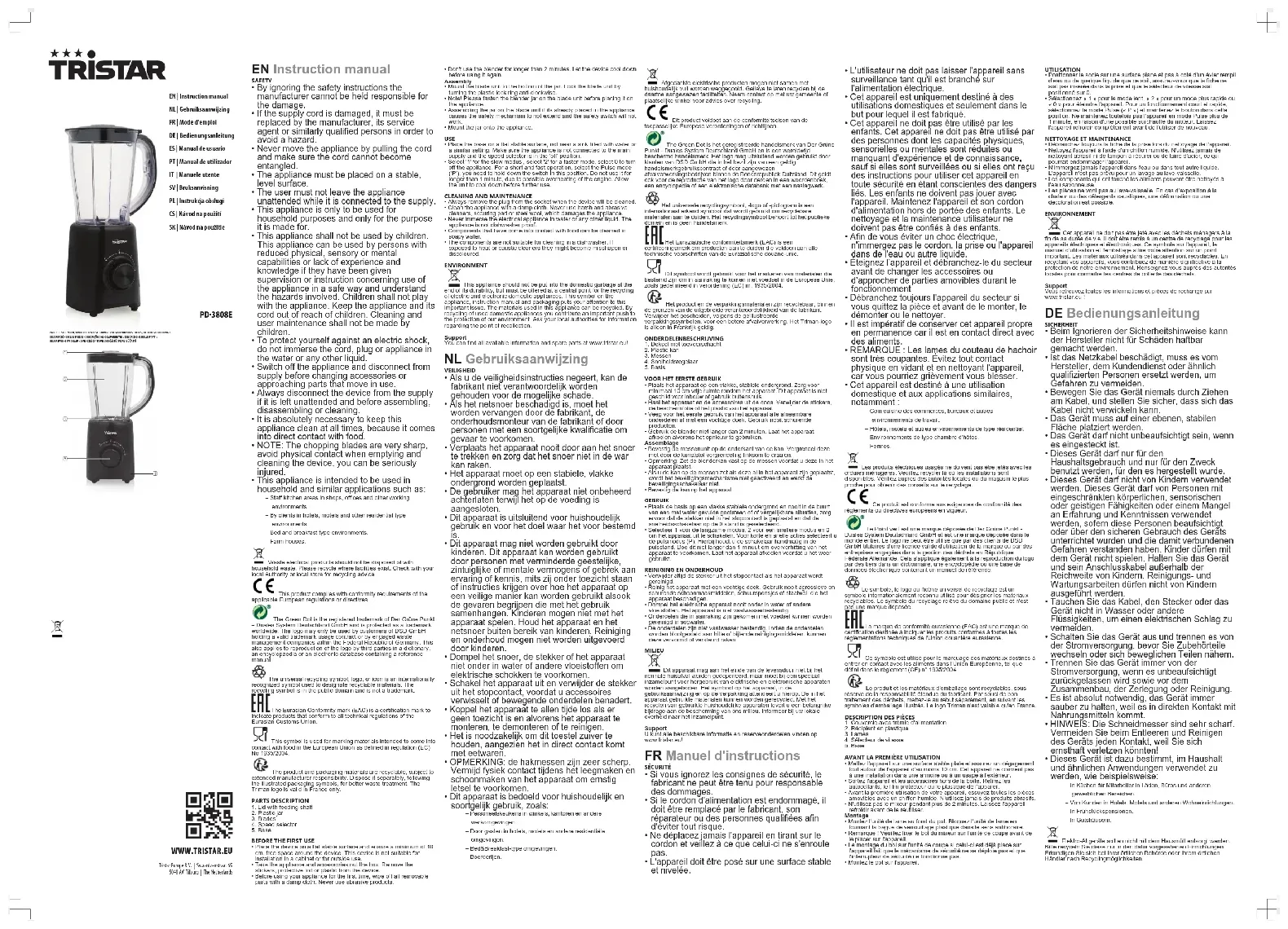 PD-3808E - Blender TRISTAR - Notice d'utilisation et mode d'emploi gratuit