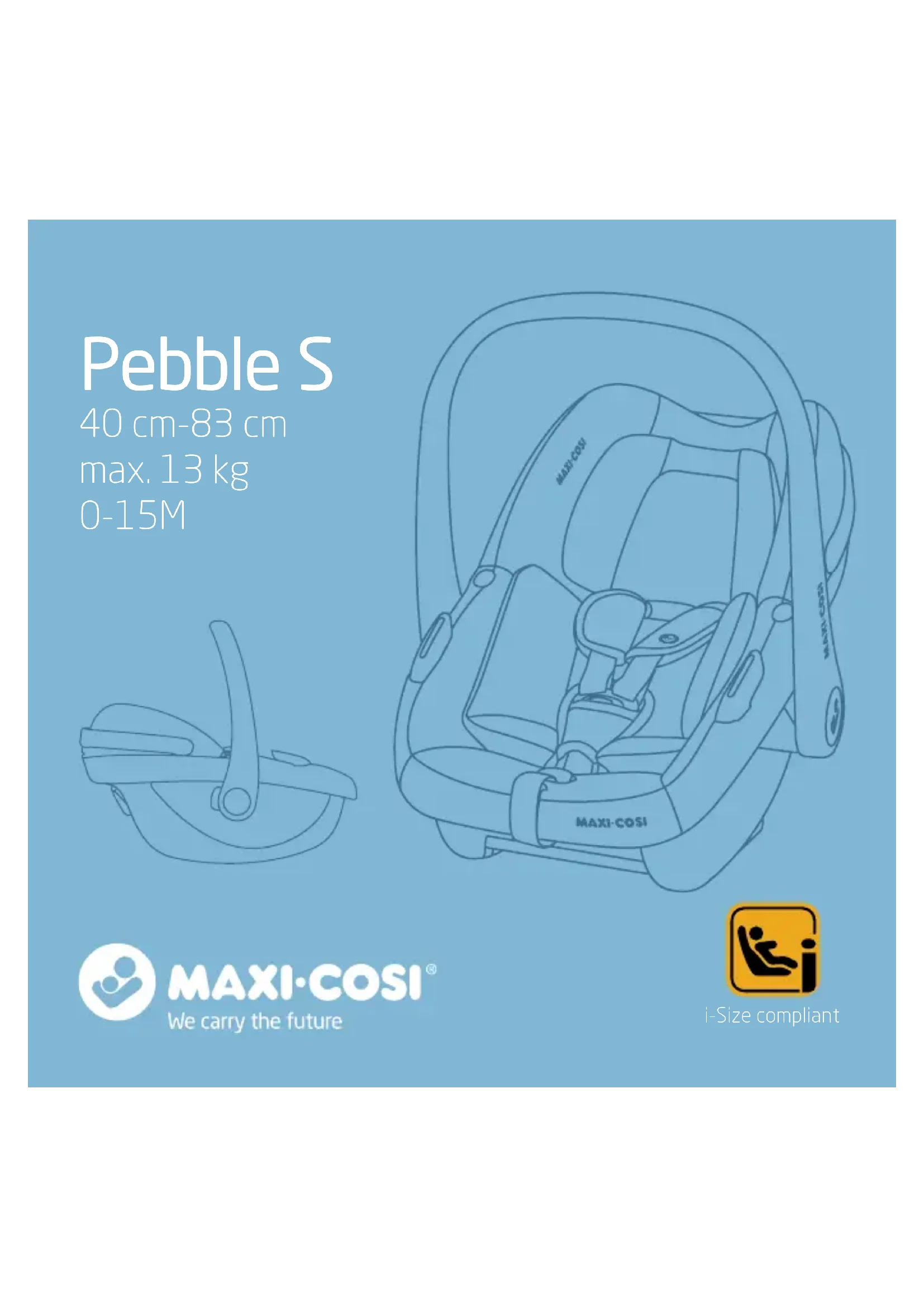 Le Pebble S est un dispositif de retenue «universel» ceinturé. Il est homologué suivant le règlement R129 (i-Size) des Nations unies pour une utilisation sur les places assises «universelles» d’un véhicule, conformément aux indications fournies par le constructeur automobile dans le manuel d’utilisation du véhicule. En cas de doute, contactez le fabricant ou le revendeur du dispositif de retenue pour enfants. Ce siège auto pour bébé fait partie de la gamme Family S qui ore une solution de mobilité complète de la naissance à environ 4ans. Pour en savoir plus sur i-Size, rendez-vous sur le site www.maxi-cosi.com. Catégorie du siège auto : i-Size (40 cm-83 cm – jusqu’à environ 15 mois) Position du siège auto : dos à la route