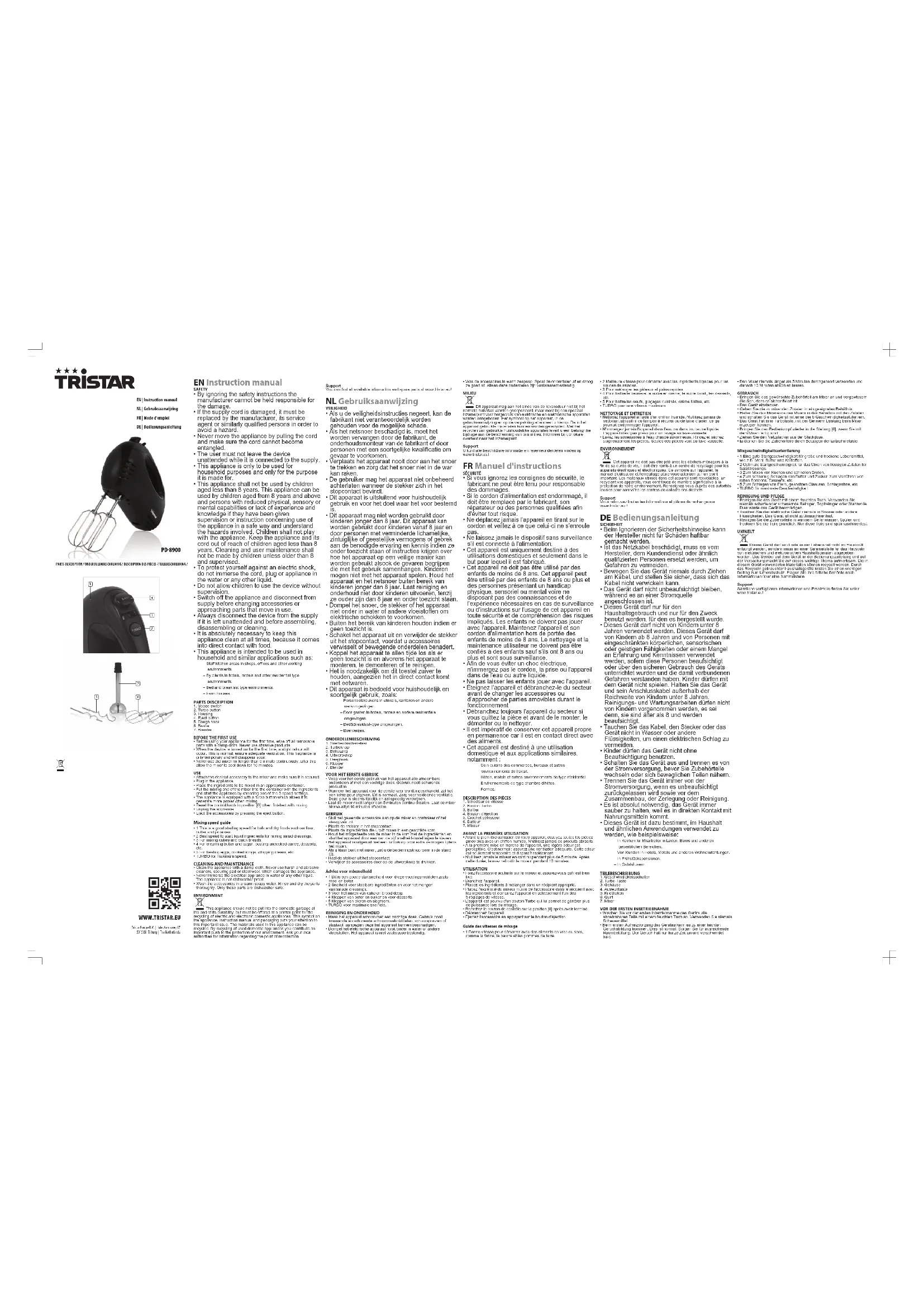 PD-8900 - Mixeur plongeant TRISTAR - Notice d'utilisation et mode d'emploi gratuit