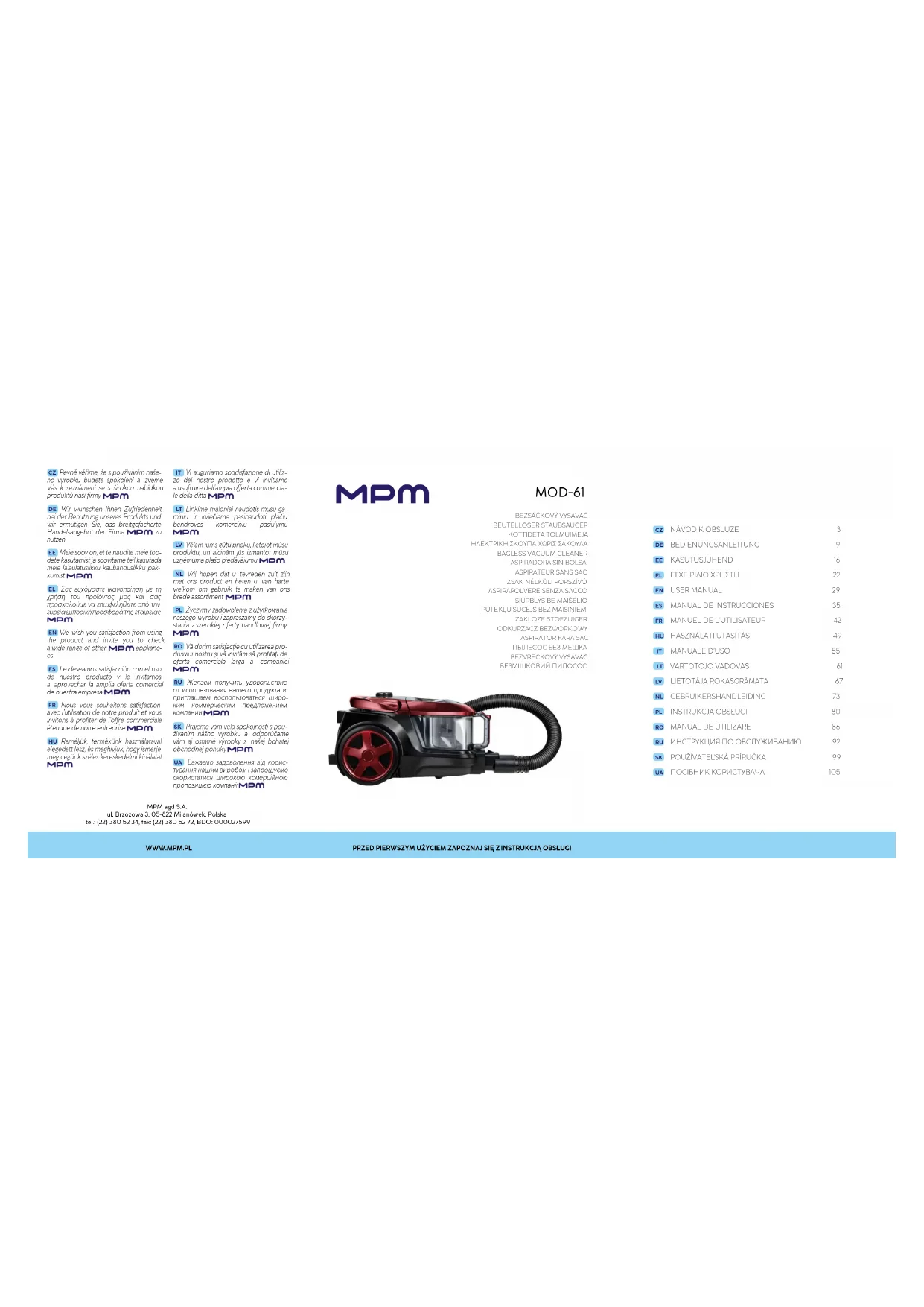 MOD-61 - Aspirateur MPM - Notice d'utilisation et mode d'emploi gratuit