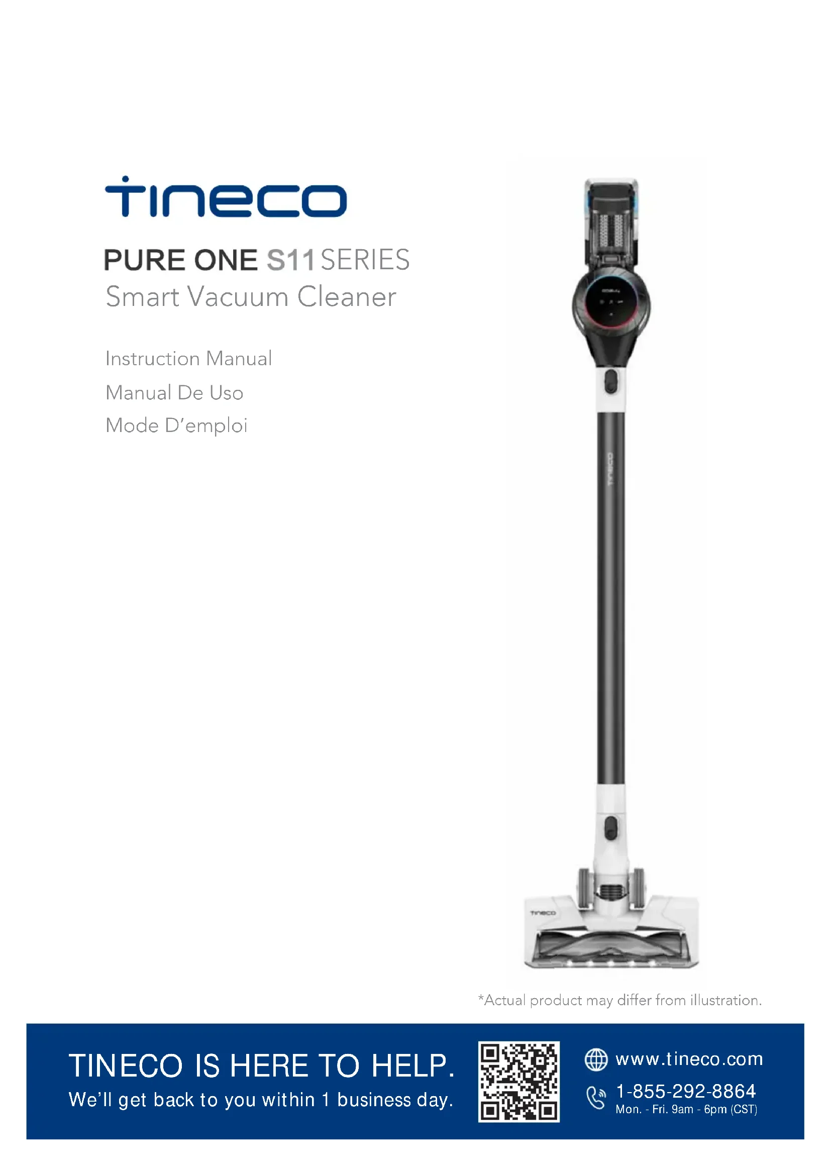 TINECO EST LÀ POUR VOUS AIDER. Nous vous répondrons dans 1 jour ouvrable. www.tineco.com 1-855-292-8864 Lu. - Ve. 9 h à18 h (CST)FR