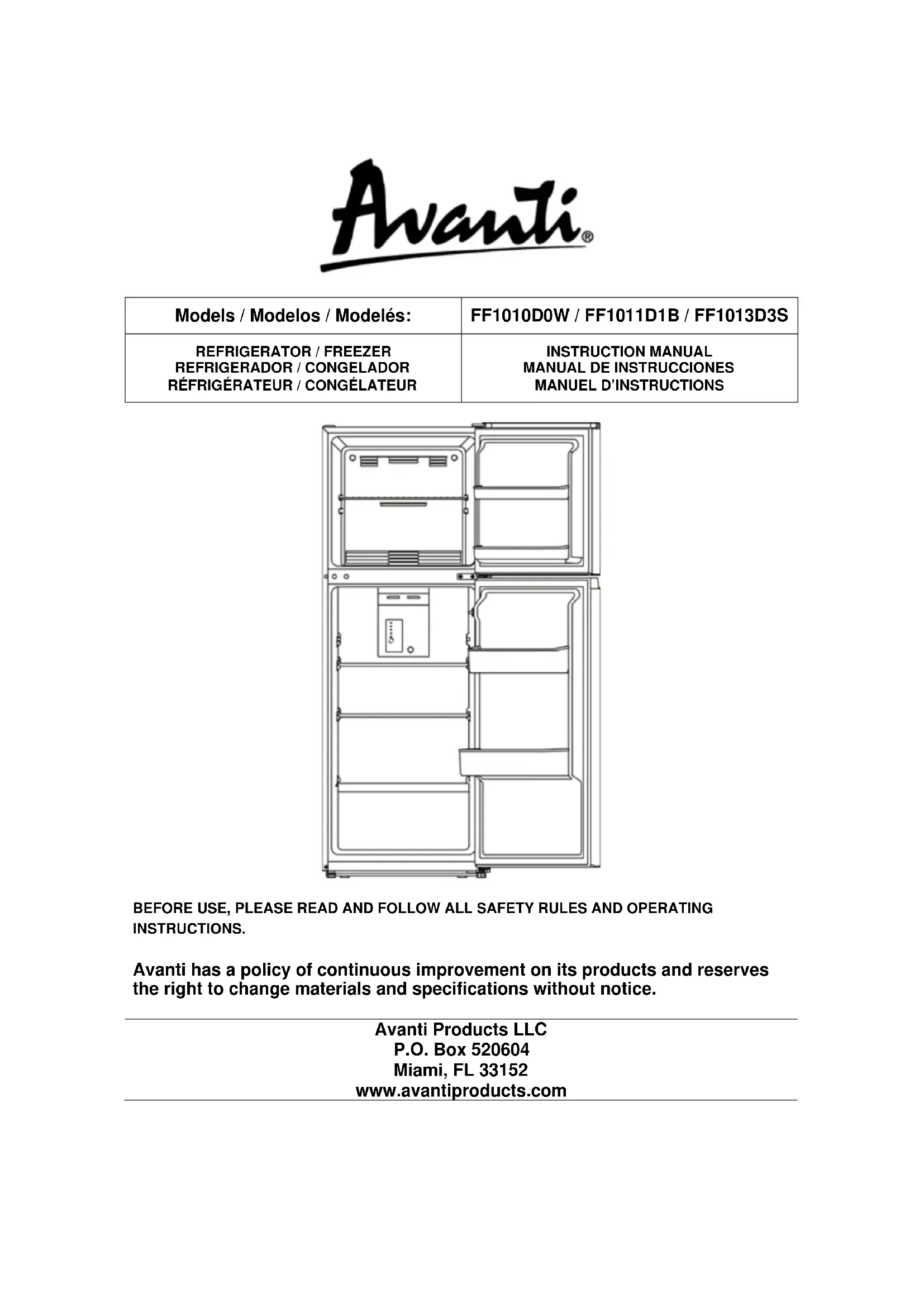 Retrouvez gratuitement la notice de l'appareil FF1013D3S Avanti au format PDF.