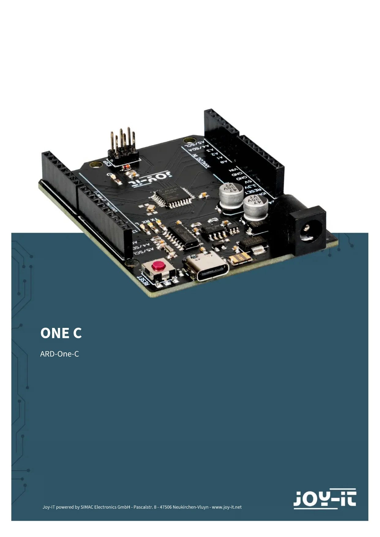 L'IDE Arduino est généralement utilisé pour programmer la carte. Vous pouvez le télécharger ici : https://www.arduino.cc/en/soware Une fois le logiciel téléchargé et installé, vous pouvez le démarrer. Avant de pouvoir charger une esquisse, vous devez eectuer quelques régla- ges pour la carte. Sélectionnez Outils → Carte → Cartes Arduino AVR → Arduino UNO . Sélectionnez également le port auquel l'appareil est connecté sous Tools → Port. Et sélectionnez AVRISP mkll comme programmateur.4. EXEMPLE DE CODE Pour tester votre conguration, vous pouvez exécuter un exemple de code simple sur votre ONE-C. pour ce faire, ouvrez le chier sous Fichier → Exemples → 01.Basics → Blink Téléchargez maintenant l'exemple en cliquant sur Upload. Cet exemple de code fait clignoter la LED de la carte.5. OBLIGATIONS D'INFORMATION ET DE REPRISE Nos obligations d'information et de reprise en vertu de la loi allemande sur les équipements électriques et électroniques (ElektroG) Symbole sur les équipements électriques et électroniques : Cette poubelle barrée signie que les appareils électriques et électroniques ne doivent pas être jetés dans les ordures ménagères. Vous devez déposer les appareils usagés dans un point de collecte. Avant de les déposer, vous devez séparer les piles et les accumulateurs usagés qui ne sont pas contenus dans l'ancien appareil. Options de retour : En tant qu'utilisateur nal, vous pouvez remettre gratuitement votre ancien appareil (qui remplit essentiellement la même fonction que l'appareil neuf acheté chez nous) pour qu'il soit éliminé lors de l'achat d'un nouvel appareil. Les petits appareils dont les dimensions extérieures ne dépassent pas 25 cm peuvent être éliminés avec les quantités normales de déchets ménagers, que vous ayez ou non acheté un nouvel appareil. Possibilité de retour dans nos locaux pendant les heures d'ouverture : SIMAC Electronics GmbH, Pascalstr. 8, D-47506 Neukirchen-Vluyn Option de retour dans votre région : Nous vous enverrons un timbre pour colis avec lequel vous pourrez nous renvoyer l'appareil gratuitement. Pour ce faire, veuillez nous contacter par e-mail à l'adresse Service@joy-it.net ou par téléphone. Informations sur l'emballage : Veuillez emballer soigneusement votre ancien appareil pour le transport. Si vous n'avez pas de matériel d'emballage approprié ou si vous ne souhaitez pas utiliser le vôtre, veuillez nous contacter et nous vous enverrons un emballage adapté. www.joy-it.net SIMAC Electronics GmbH Pascalstr. 8 47506 Neukirchen-Vluyn Publié le : 2024.04.17