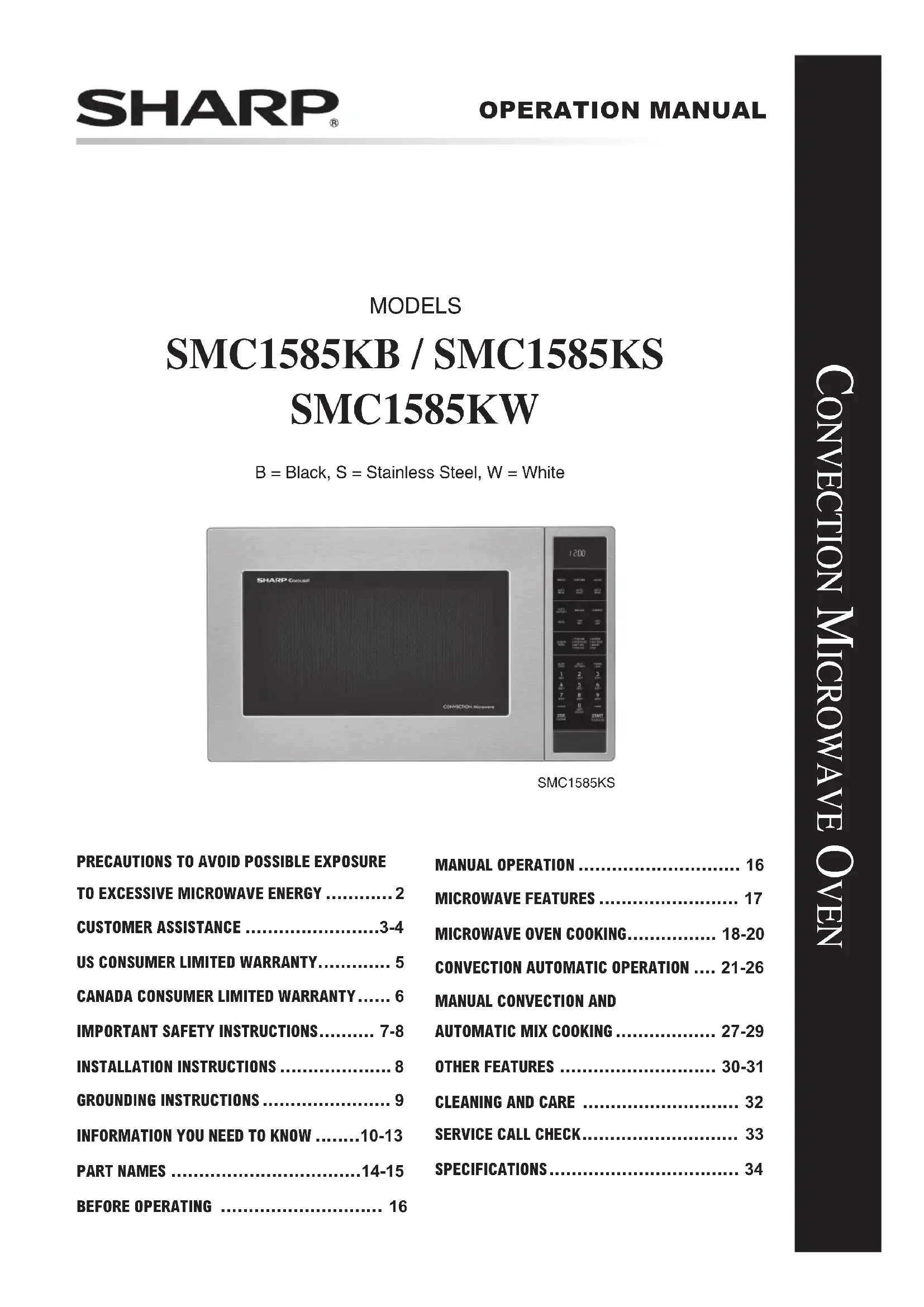 Retrouvez gratuitement la notice de l'appareil SMC1585KB SHARP au format PDF.