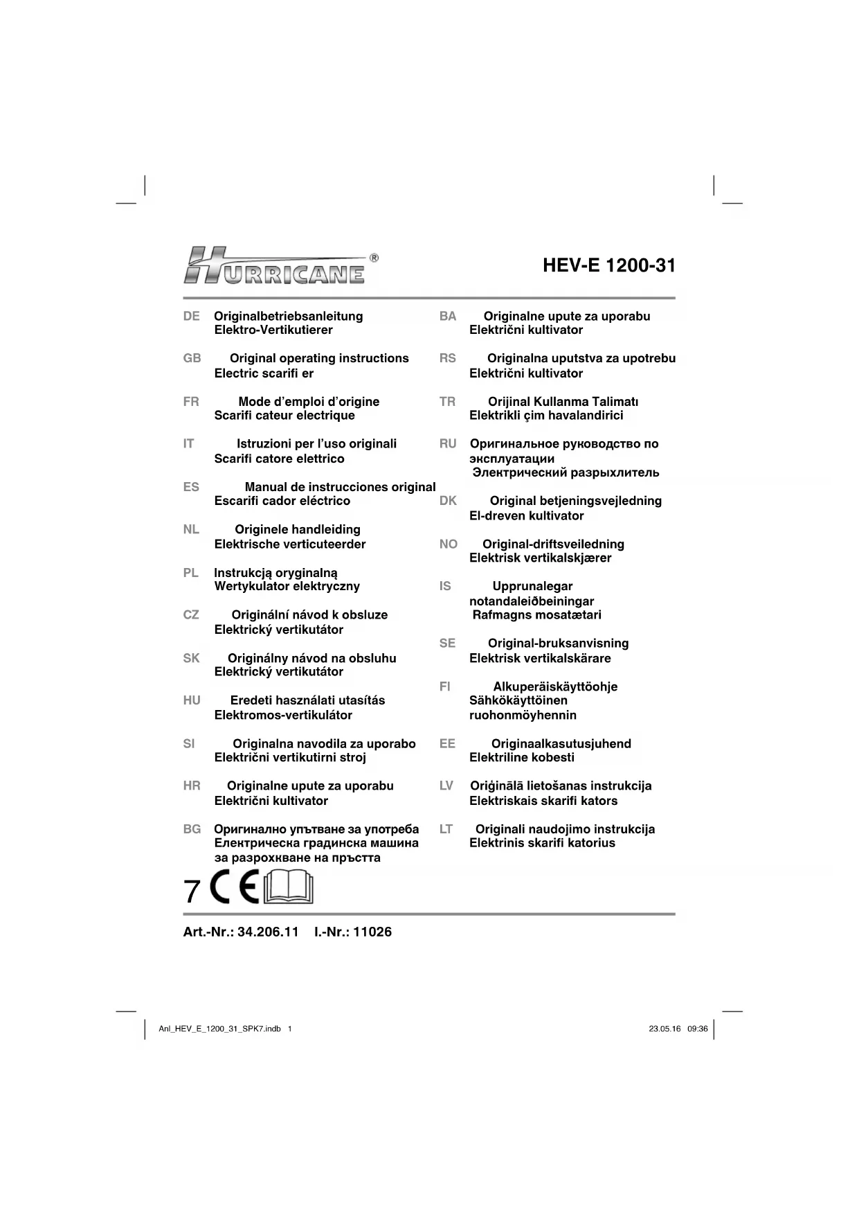 ivante : www.isc-gmbh.info. Veuillez garder à disposition la preuve d‘achat ou tout autre justifi catif de l‘achat de votre nouvel appareil. Les appareils envoyés sans les justifi catifs correspondants ou sans plaque signalétique sont exclus de la prestation de garantie en raison de l‘impossibilité de les enregistrer. Si le défaut de l‘appareil est inclut dans la garantie, vous recevrez sans délai un appareil réparé ou un nouvel appareil. Pour les pièces d‘usure, de consommation et manquantes, nous renvoyons aux restrictions de cette ga- rantie conformément aux informations du service après-vente de ce mode d‘emploi. Anl_HEV_E_1200_31_SPK7.indb 32Anl_HEV_E_1200_31_SPK7.indb 32 23.05.16 09:3623.05.16 09:36IT