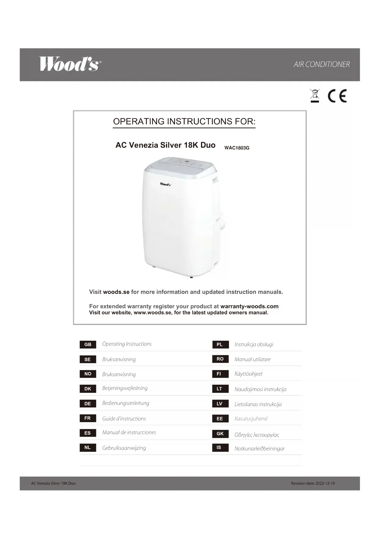 Venezia 18K Duo - Climatisation Wood's - Notice d'utilisation et mode d'emploi gratuit