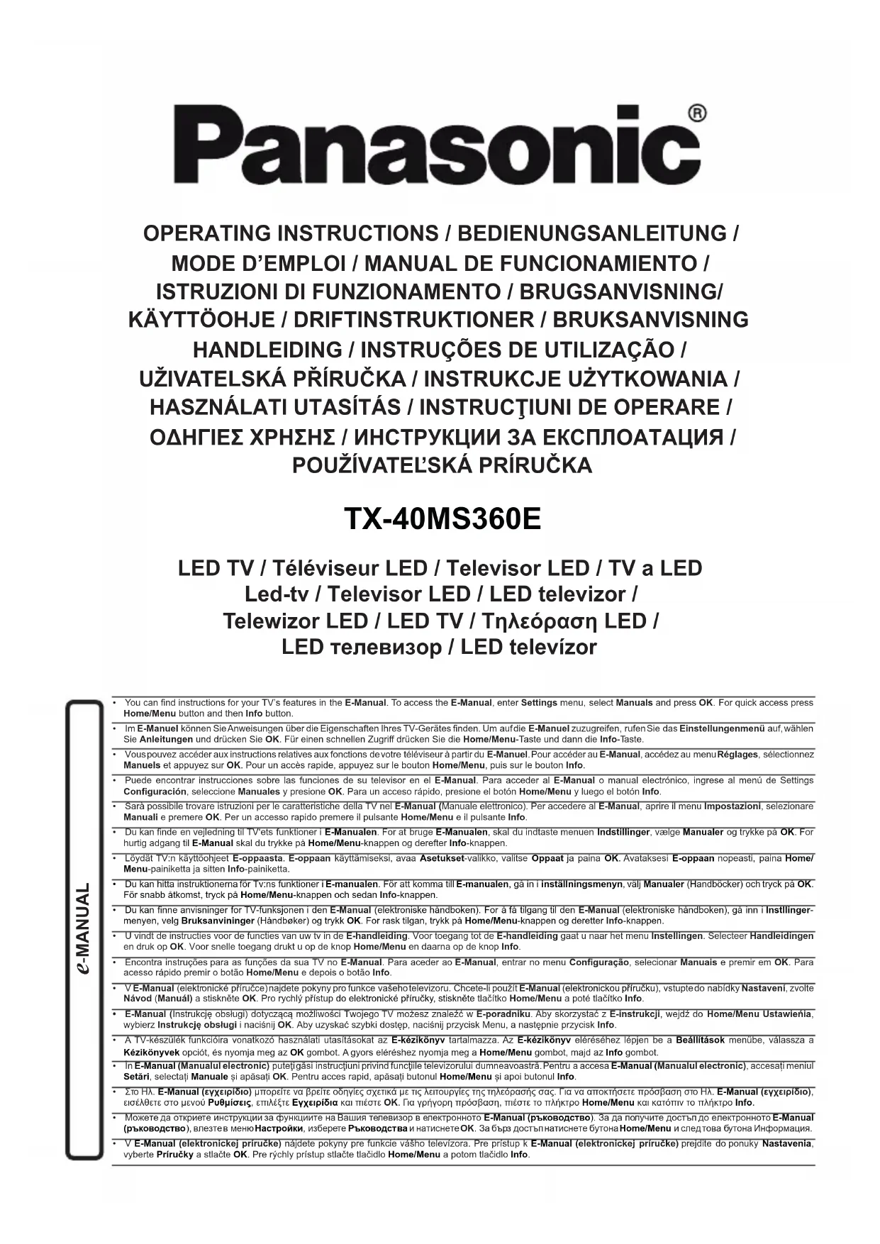 TX-40MS360E - Téléviseur PANASONIC - Notice d'utilisation et mode d'emploi gratuit