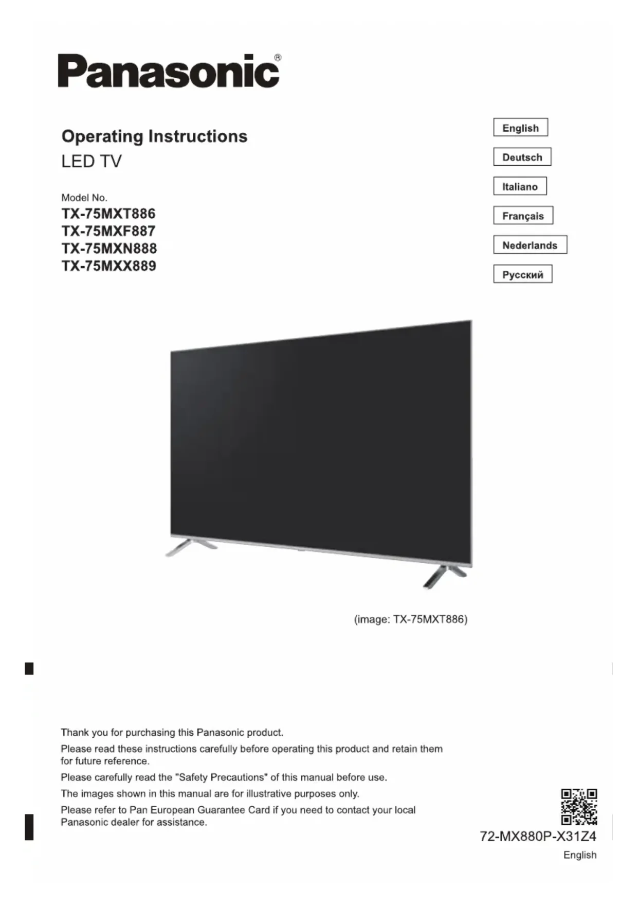 TX-75MXX889 - Téléviseur PANASONIC - Notice d'utilisation et mode d'emploi gratuit