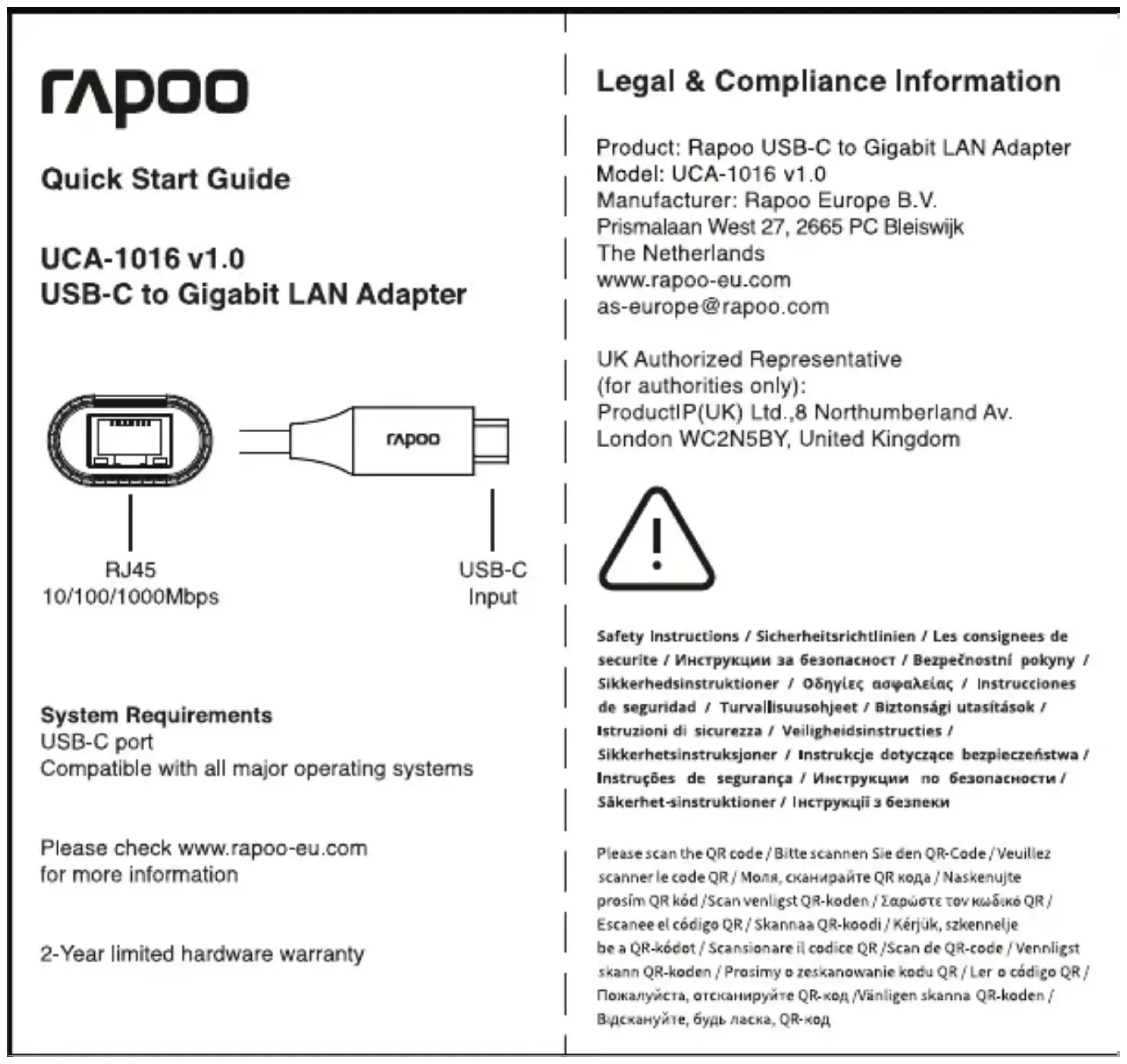 Retrouvez gratuitement la notice de l'appareil UCA-1016 RAPOO au format PDF.