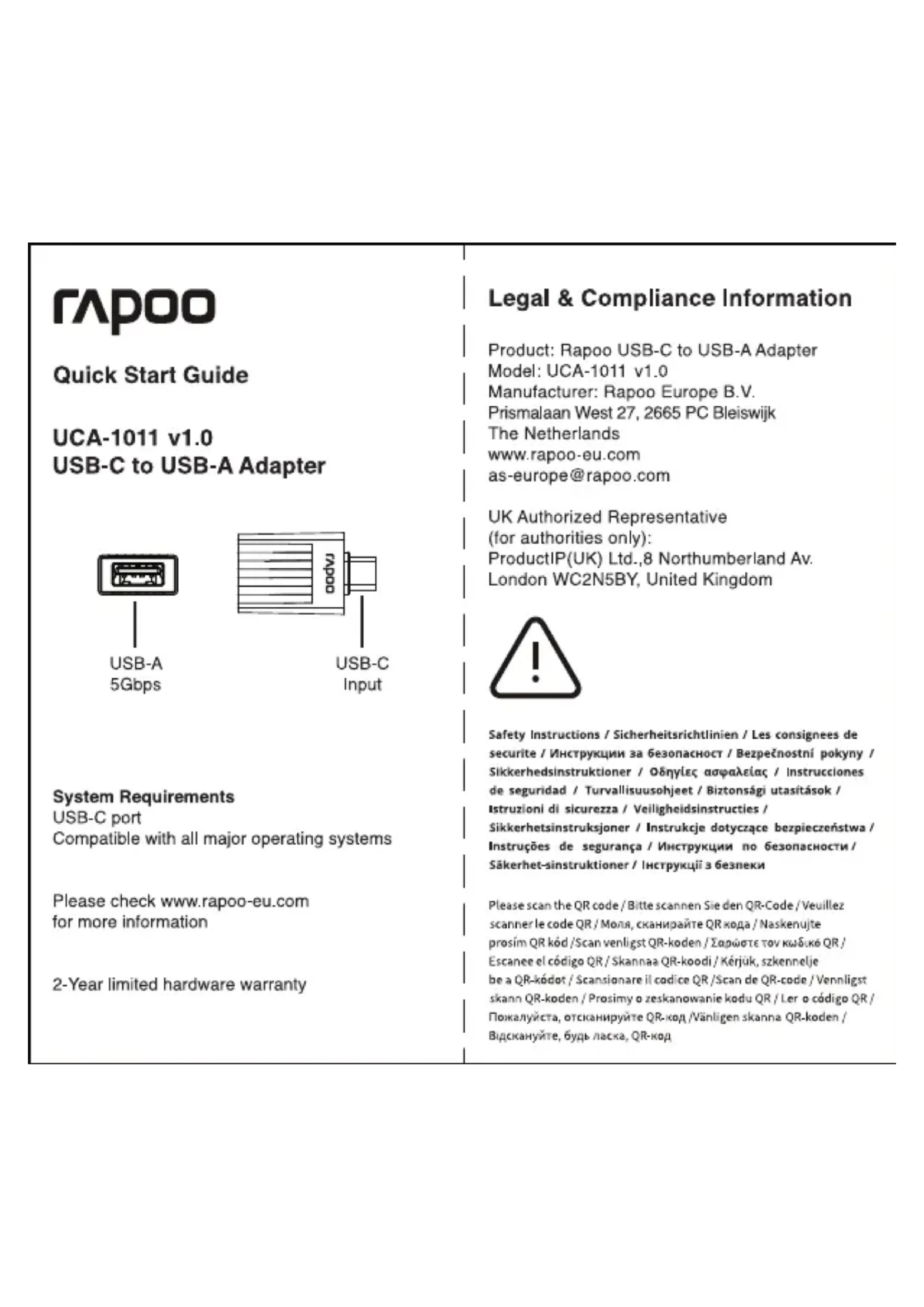 Retrouvez gratuitement la notice de l'appareil UCA-1011 RAPOO au format PDF.