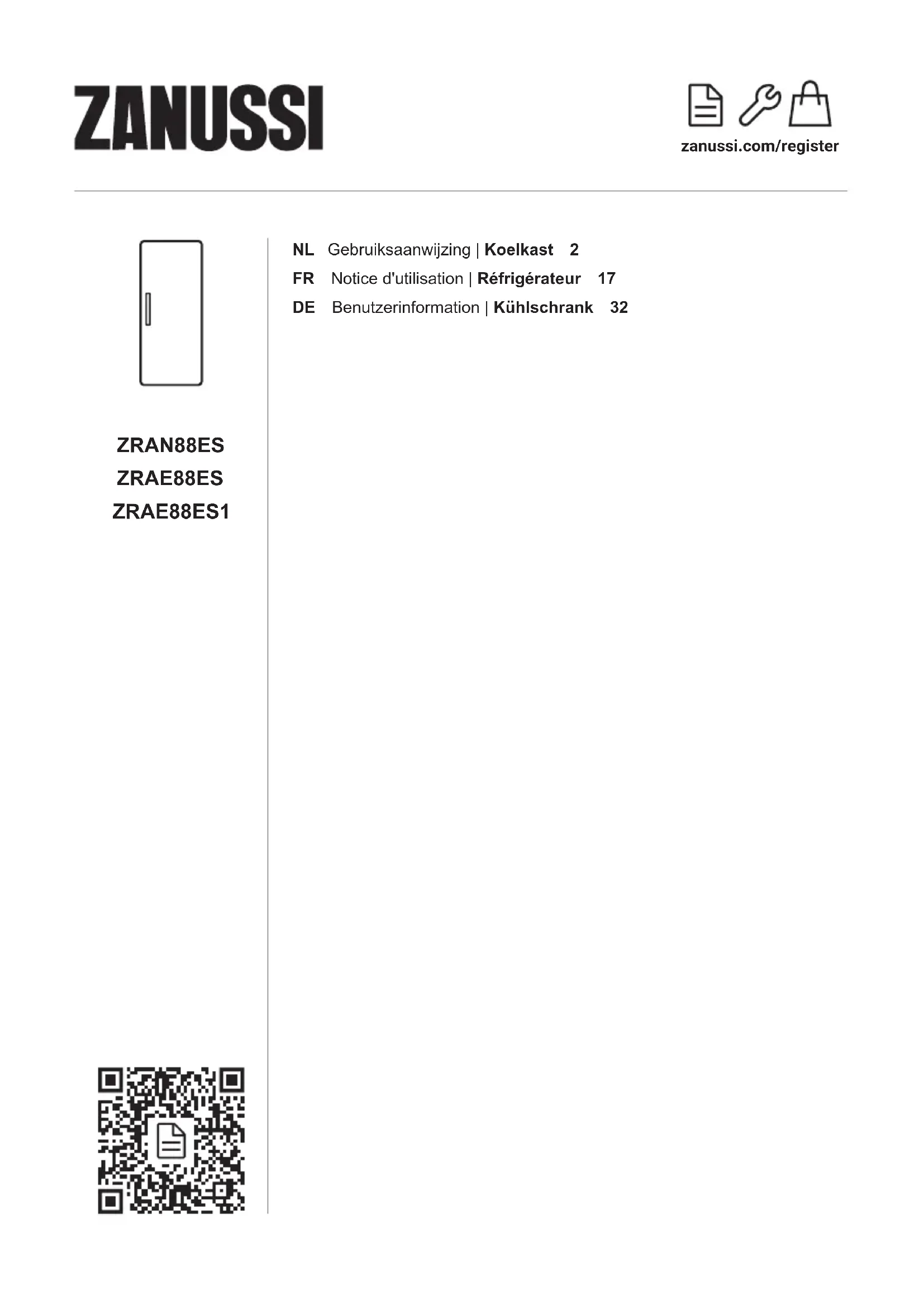 ZRAE88ES1 - Réfrigérateur ZANUSSI - Notice d'utilisation et mode d'emploi gratuit