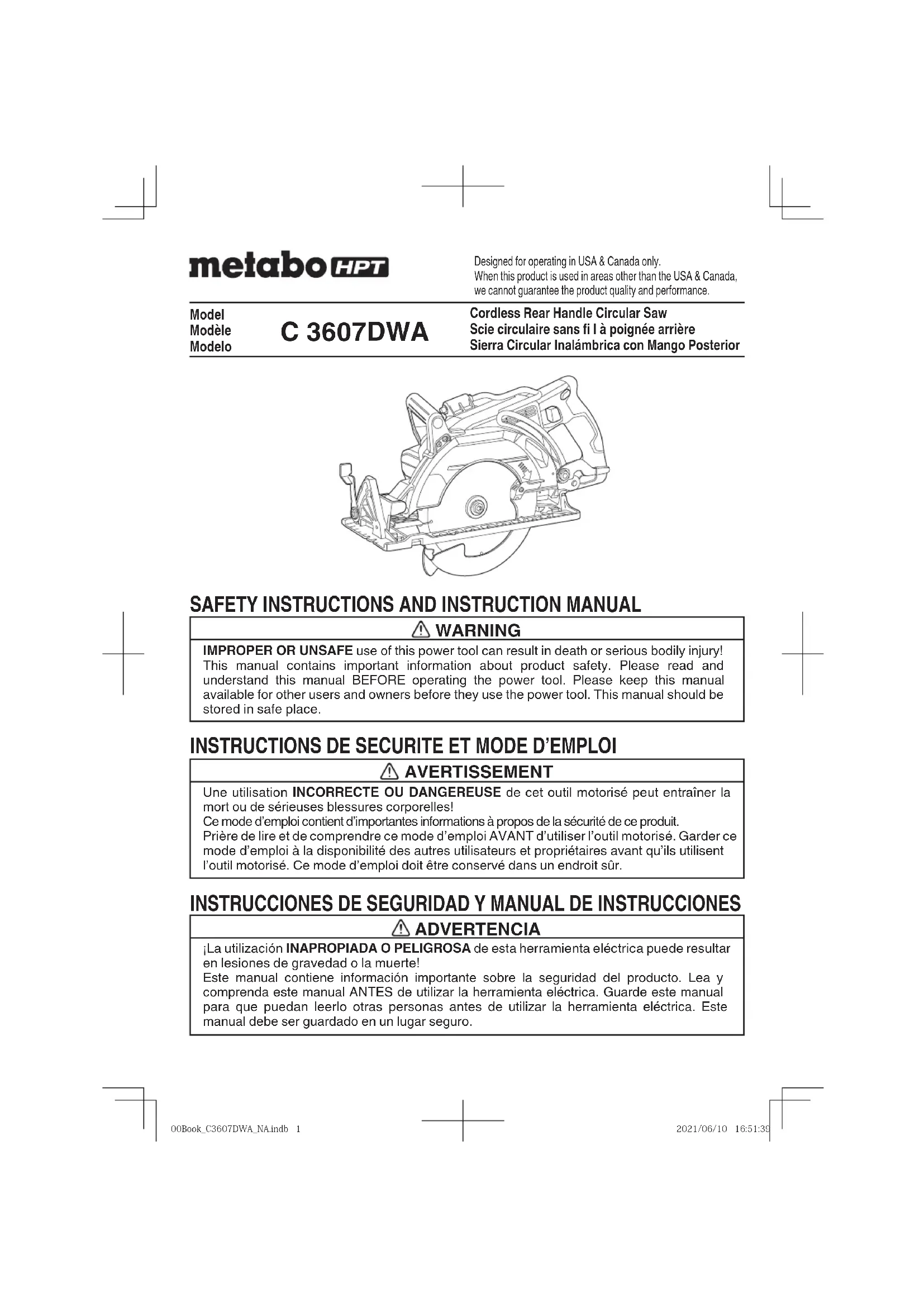 C3607DWAQ4 - Scie METABO - Notice d'utilisation et mode d'emploi gratuit