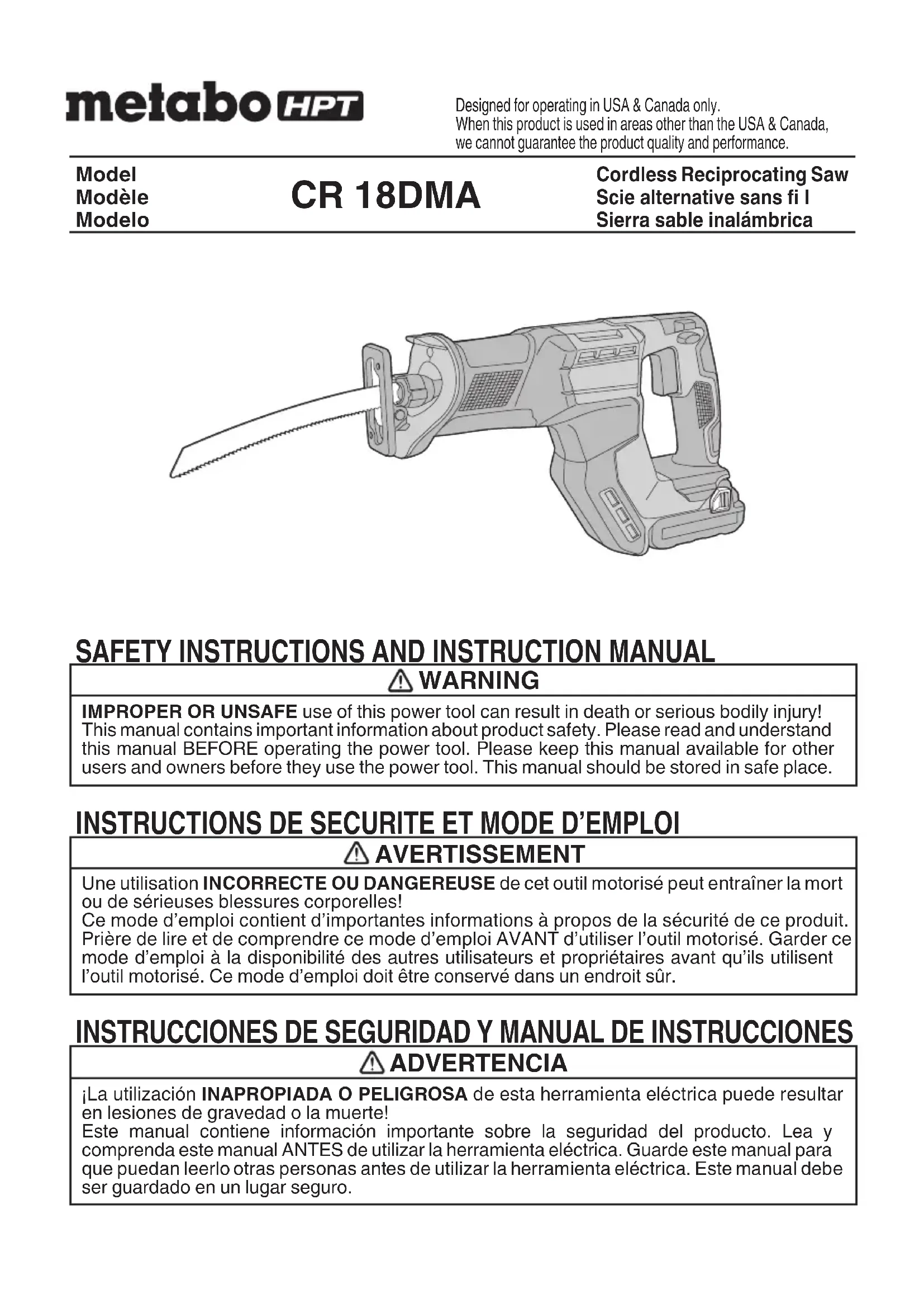 CR18DMA - Scie METABO - Notice d'utilisation et mode d'emploi gratuit