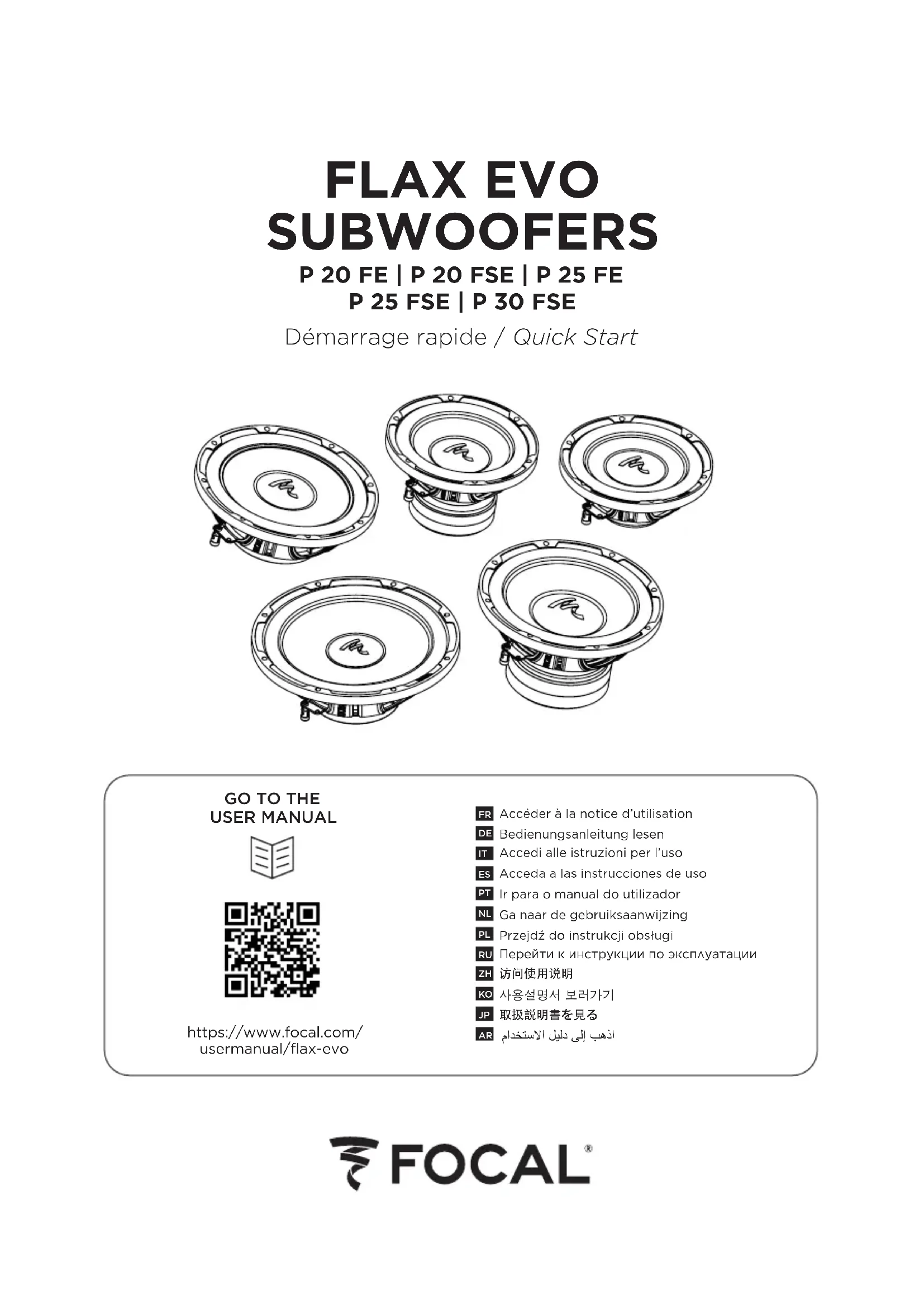 éventuels, ne pas écouter les enceintes à un niveau sonore élevé pendant une longue durée. L’écoute d’enceintes à un niveau sonore excessif peut endommager l’oreille de l’utilisateur et entraîner des troubles auditifs (surdité temporaire ou définitive, bourdonnements d’oreille, acouphènes, hyperacousie). L’exposition de l'appareil auditif à un niveau supérieur à 85 dB SPL LAeq pendant plusieurs heures peut endommager l’ouïe irréversiblement. Conditions de garantie En cas de problème, s’adresser à votre revendeur Focal. La garantie légale de conformité pour la France sur tout matériel Focal est de 2 ans à partir de la date d’achat. En cas de non- conformité du matériel, celui-ci doit être expédié, dans son emballage d’origine auprès du revendeur, lequel analysera le matériel et déterminera la nature de la panne. Si celui-ci est sous garantie et que les conditions de déclenchement de la garantie sont réunies, le matériel vous sera réparé ou remplacé selon les conditions applicables en matière de garantie légale à la date d’achat de l’appareil. Dans le cas contraire, un devis de réparation vous sera proposé. La garantie ne couvre pas les dommages résultant d’une mauvaise utilisation ou d’un branchement incorrect (bobines mobiles brûlées par exemple...). En dehors de la France, le matériel Focal est couvert par une garantie dont les conditions sont fixées ou mises en œuvre localement par le distributeur ociel Focal de chaque pays, conformément aux lois en vigueur sur le territoire concerné. Les modalités d'installation et de fixation des enceintes sur quelque surface qu’elle soit (support, ancrage au sol, etc…) répondent à des conditions et normes d‘installation, d’aménagement, de sécurité et de câblage en vigueur applicables aux surfaces et/ou supports concernés. De plus, les produits peuvent vibrer et endommager les supports sur lesquels ils sont fixés. C'est la raison pour laquelle l'opération d'installation doit être eectuée par un professionnel qualifié, connaissant les normes d'installation et de sécurité. Focal ne fournit aucune garantie de destination à un support ou une installation donnée, la mise en œuvre de l'installation des enceintes relevant du seul client. Focal ne saurait donc être tenue responsable à quelque titre que ce soit en cas d’incident, accident et/ou toute autre conséquence ou dommage de quelque nature qu'il soit lié à l'installation des enceintes. L’usage d’un caisson Bass-reflex avec les subwoofers P 20 FSE, P 25 FSE et P 30 FSE n’est pas recommandé.IMPORTANT SAFETY INSTRUCTIONS! English Warning symbol. This symbol is designed to warn the user of the presence of important instructions mentioned in the user manual and relating to the handling, operation and maintenance of the device. 1 . Read these instructions.