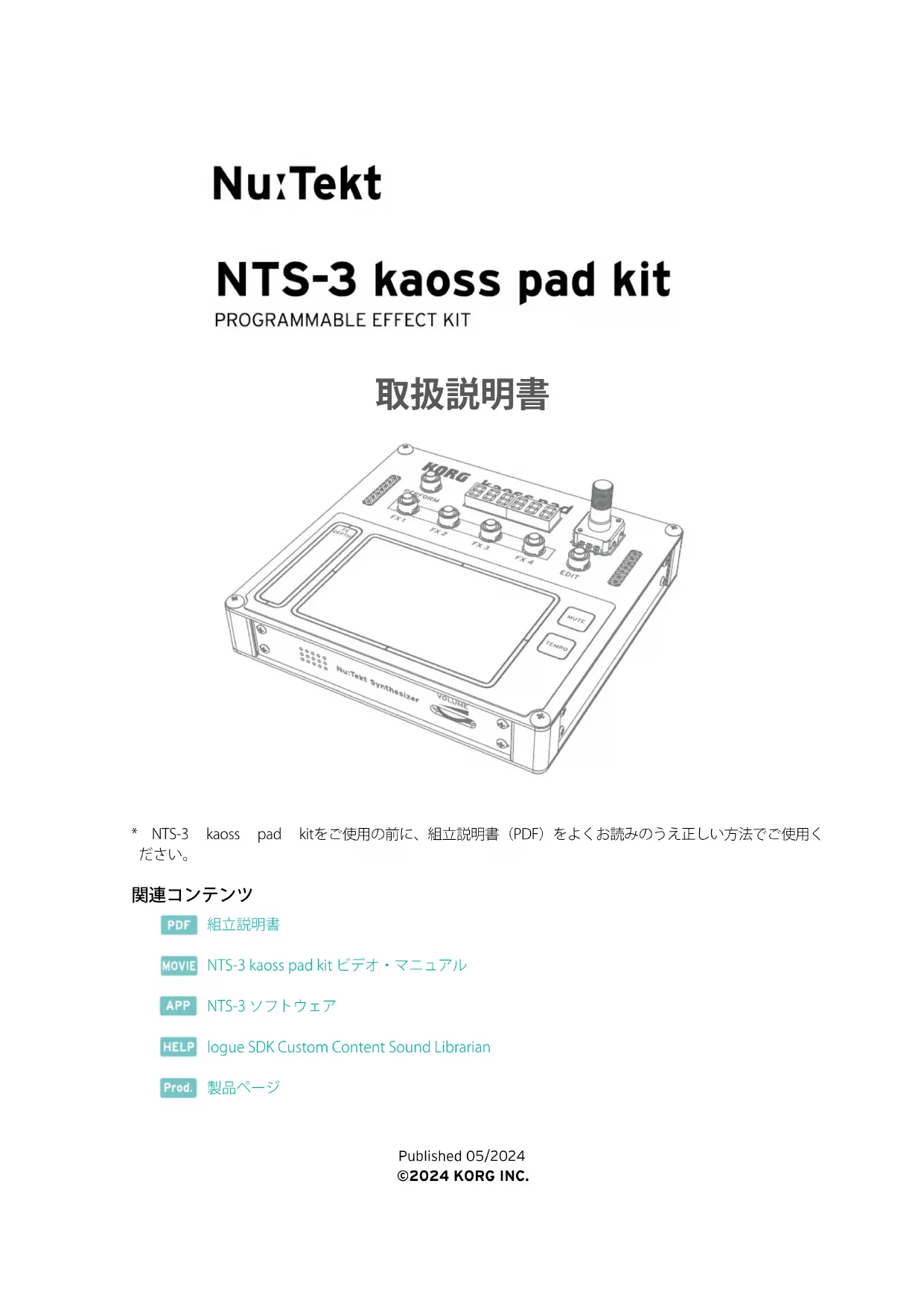 Retrouvez gratuitement la notice de l'appareil Nu:Tekt NTS-3 KORG au format PDF.