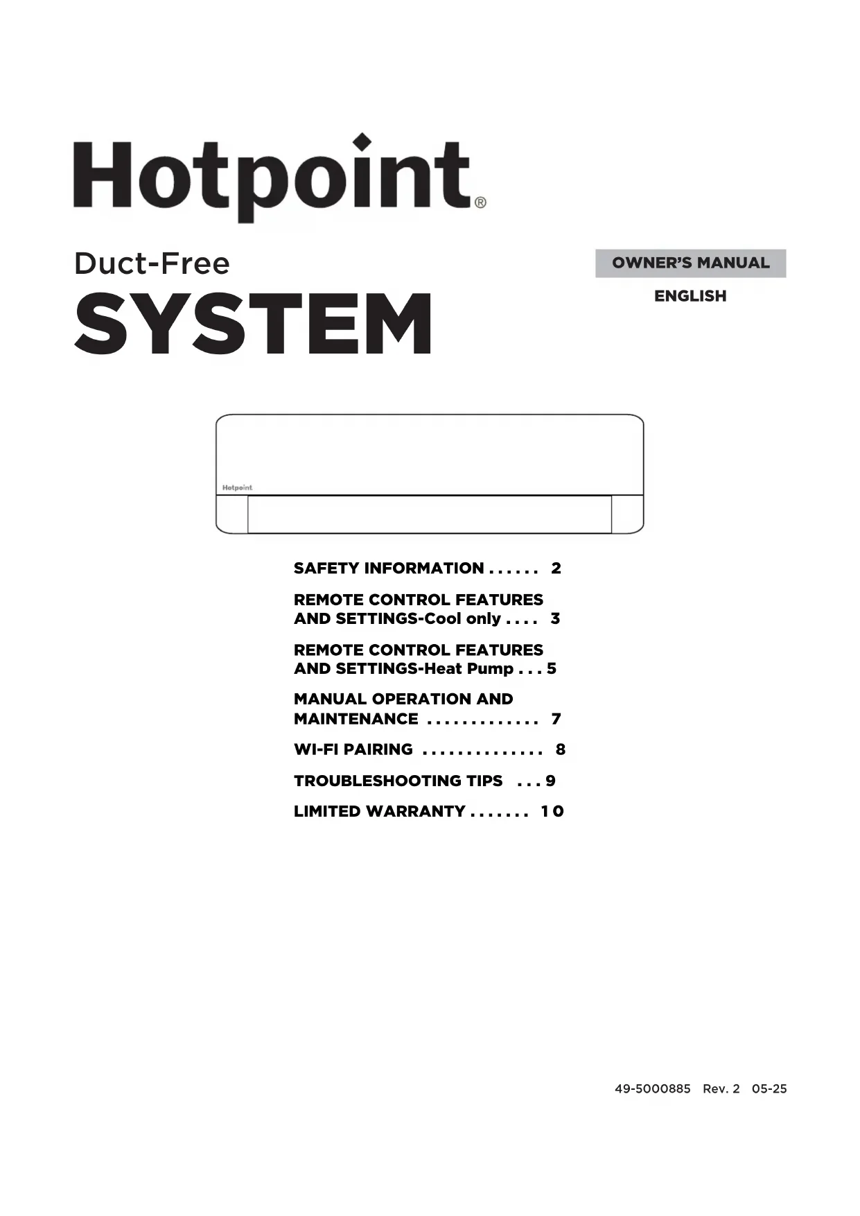 - Y a-t-il trop de sources de chaleur ou de personnes dans la pièce durant la climatisation? Pour obtenir des conseils de dépannage supplémentaires, consultez le manuel d'installation complet à l'adresse Hotpoint.com. Conseils de dépannage… Avant d’appeler un réparateur CONSEILS DE DÉPANNAGE20 49-5000885 Rev. 2 Pour des renseignements détaillés sur la garantie, veuillez vous reporter au manuel d’installation. Garantie Limitée
