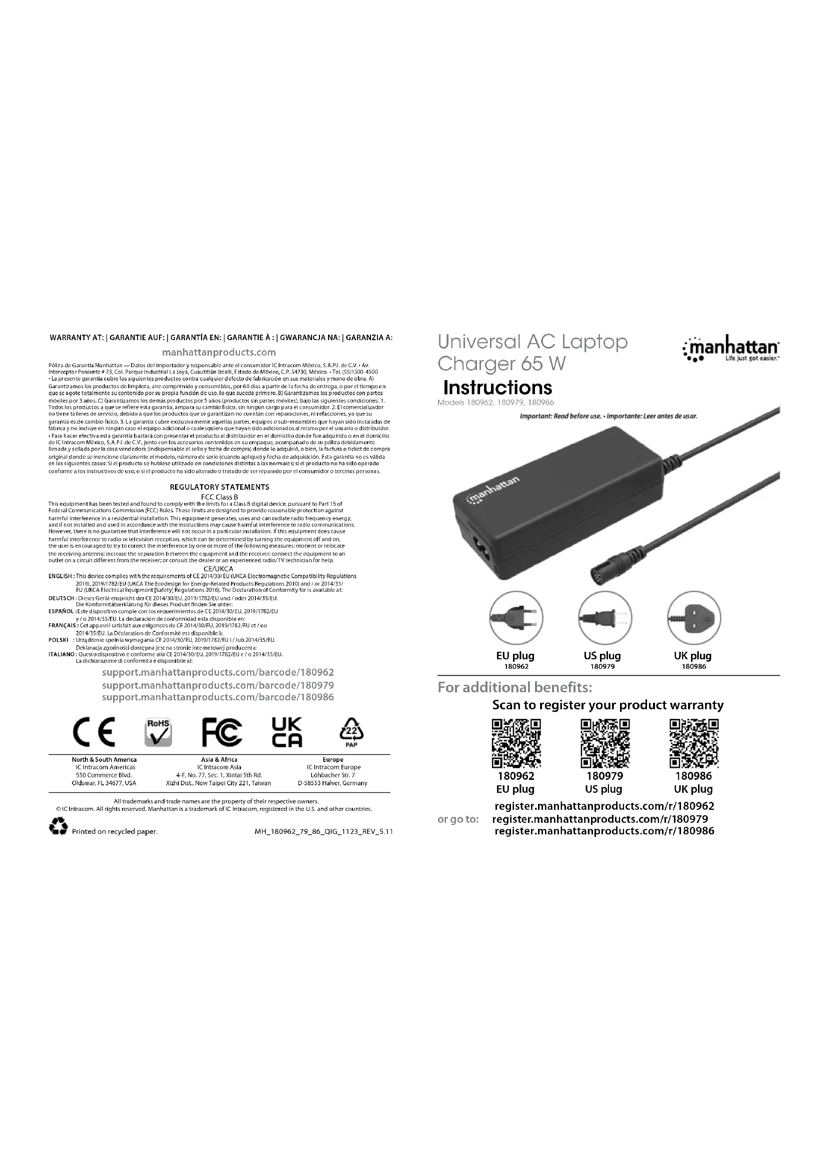 Téléchargez la notice de votre Chargeur de batterie au format PDF gratuitement ! Retrouvez votre notice 180962 - MANHATTAN et reprennez votre appareil électronique en main. Sur cette page sont publiés tous les documents nécessaires à l'utilisation de votre appareil 180962 de la marque MANHATTAN.