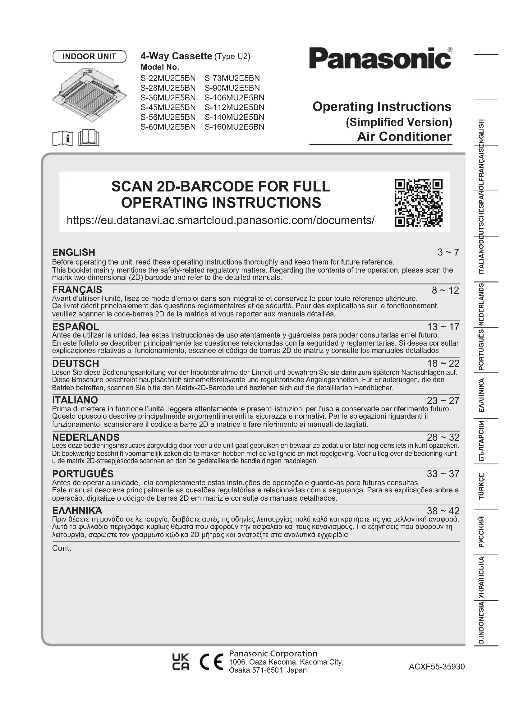 Retrouvez gratuitement la notice de l'appareil S-73MU2E5BN PANASONIC au format PDF.