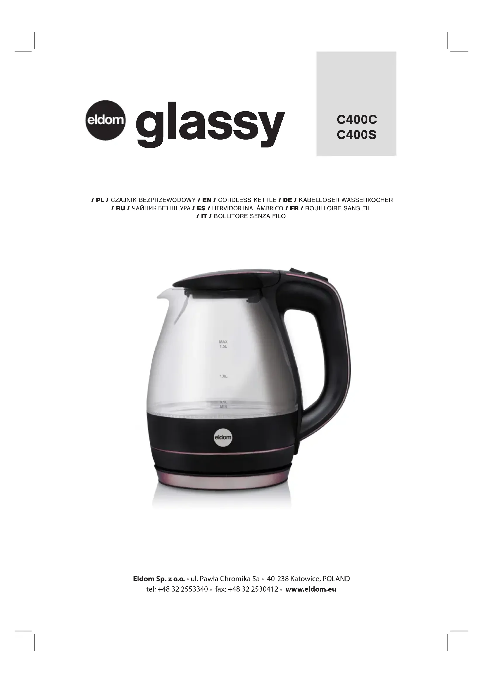 Glassy C400S - Bouilloire Eldom - Notice d'utilisation et mode d'emploi gratuit