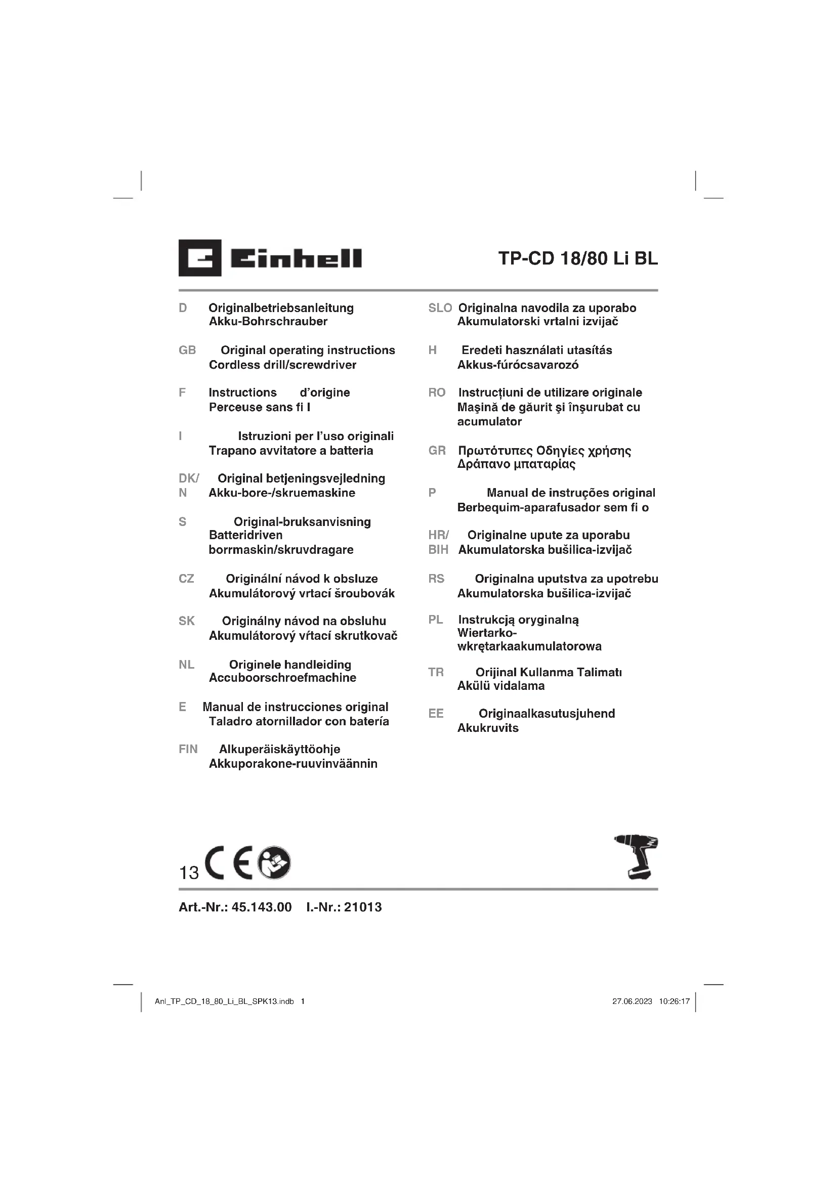 Retrouvez gratuitement la notice de l'appareil TP-CD 18/80 Li BL EINHELL au format PDF.