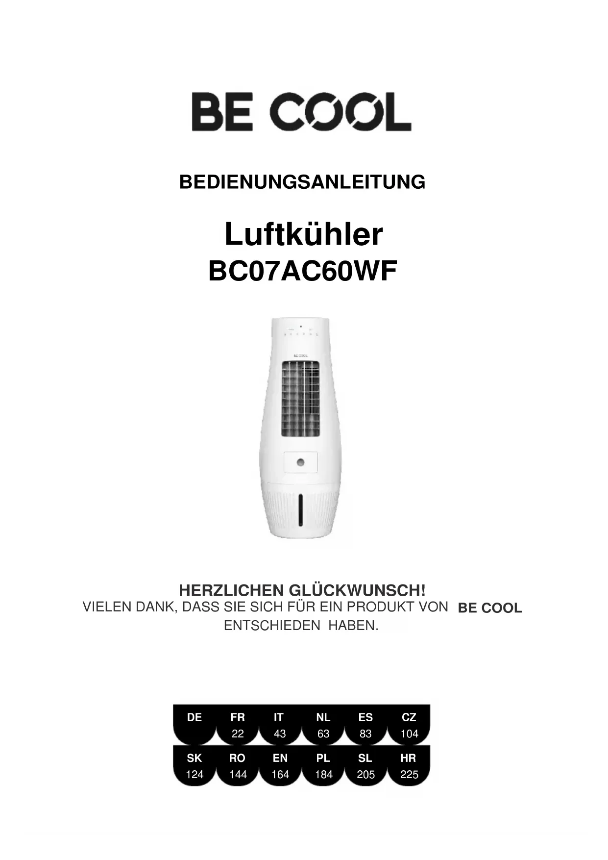 Dimensions du produit 300 x 300 x 807 mm Poids net 4,15 kg Adresses de contact pour de plus amples informations et ligne de service : Schuss Horne Electronic GmbH Scheringgasse 3, A-1140 Vienne Tél : +43 (1) 97 0 21 - 0 www.becool.at N° FB : 23697 4 t / Tribunal FB : Vienne42 GARANTIE Avec ce produit de qualité BE COOL, vous avez fait le choix de l'innovation, de la durabilité et de la fiabilité. Pour cet appareil BECOOL, nous accordons une garantie de 2 ans à partir de la date d'achat, valable en Autriche ! Si, contre toute attente, des travaux de service devaient être effectués sur votre appareil pendant cette période, nous vous garantissons par la présente une réparation gratuite (pièces et main d'œuvre) ou (à la discrétion de la société Schuss) un échange du produit. Si ni la réparation ni l'échange ne sont possibles pour des raisons économiques, nous nous réservons le droit d'établir un crédit de valeur vénale. Dans le cas des climatiseurs, veuillez vous adresser dans un premier temps à la hotline clients (voir l'autocollant sur l'appareil ou la page de garde du mode d'emploi) ; pour les ventilateurs, veuillez vous adresser à votre revendeur ou directement à nous. Nous attirons votre attention sur le fait que les travaux de réparation qui n'ont pas été effectués par l'atelier agréé en Autriche mettent immédiatement fin à la validité de cette garantie. Ne sont pas couverts par cette garantie