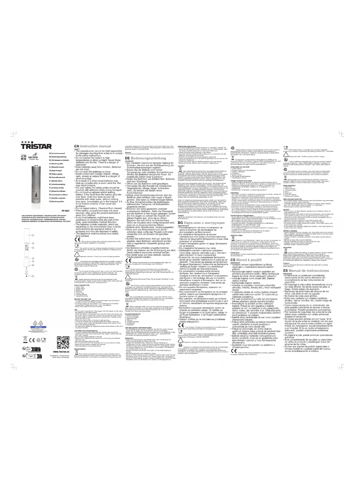 PD-3823 - Moulin à sel/poivre TRISTAR - Notice d'utilisation et mode d'emploi gratuit