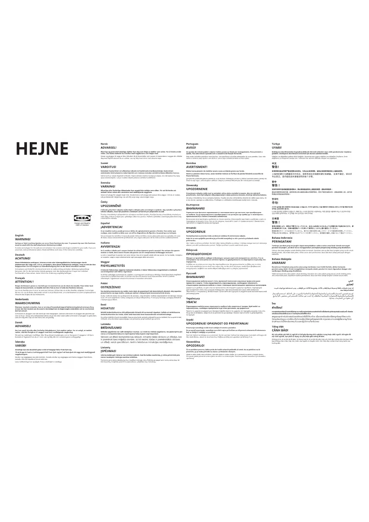 Retrouvez gratuitement la notice de l'appareil HEJNE 002.878.08 IKEA au format PDF.