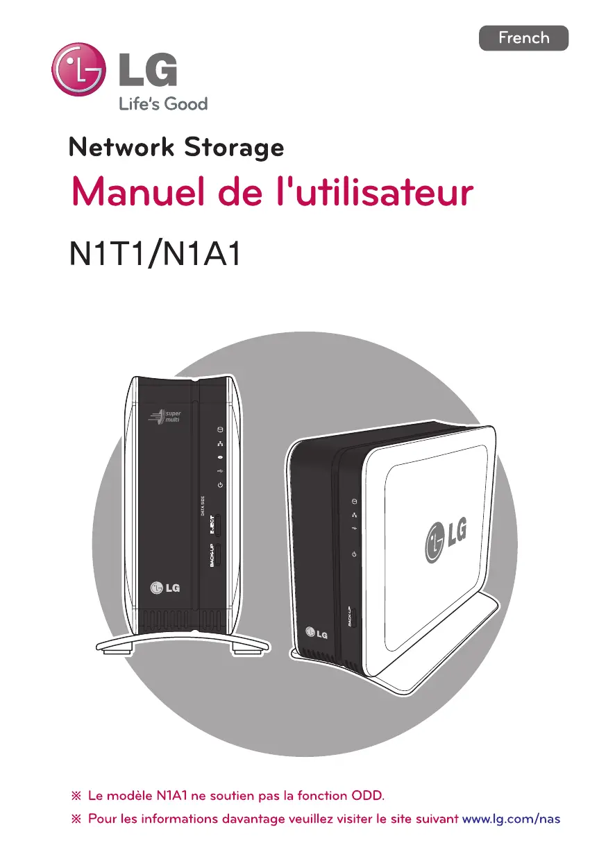 Life's Good Network Storage Manuel de l'utilisateur N1TI/N1A1 %X Le modèle NIAT ne soutien pas la fonction ODD. X Pour les informations davantage veuillez visiter le site suivant www.lg.com/nas