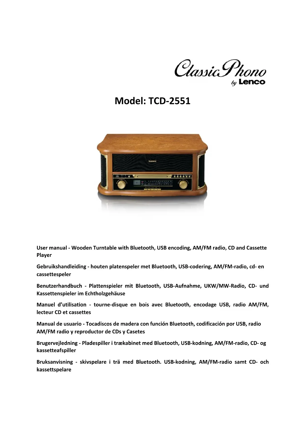 Retrouvez gratuitement la notice de l'appareil TCD-2551 Classic Phono au format PDF.