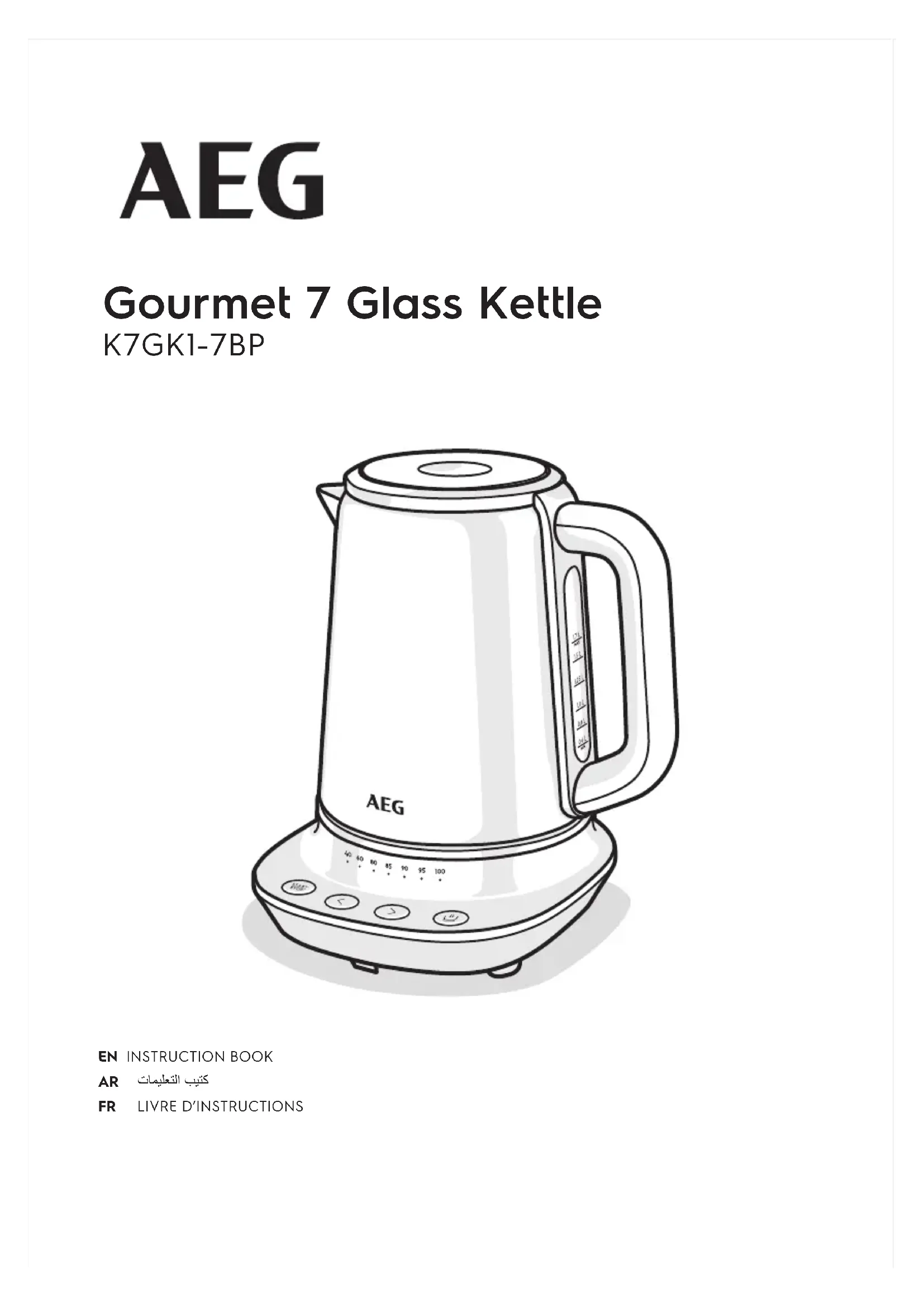 L'appareil s'éteint avant l'ébullition. Trop de tartre dans le socle de la bouilloire. Exécutez la procédure de détartrage. L'appareil ne s'allume pas. Après avoir fonctionné avec peu ou pas d'eau, l'appareil n'a pas susamment refroidi. Laissez refroidir un court instant puis réessayez.AEG IFU K7GK1-7BP Share more of our thinking at www.aeg.com
