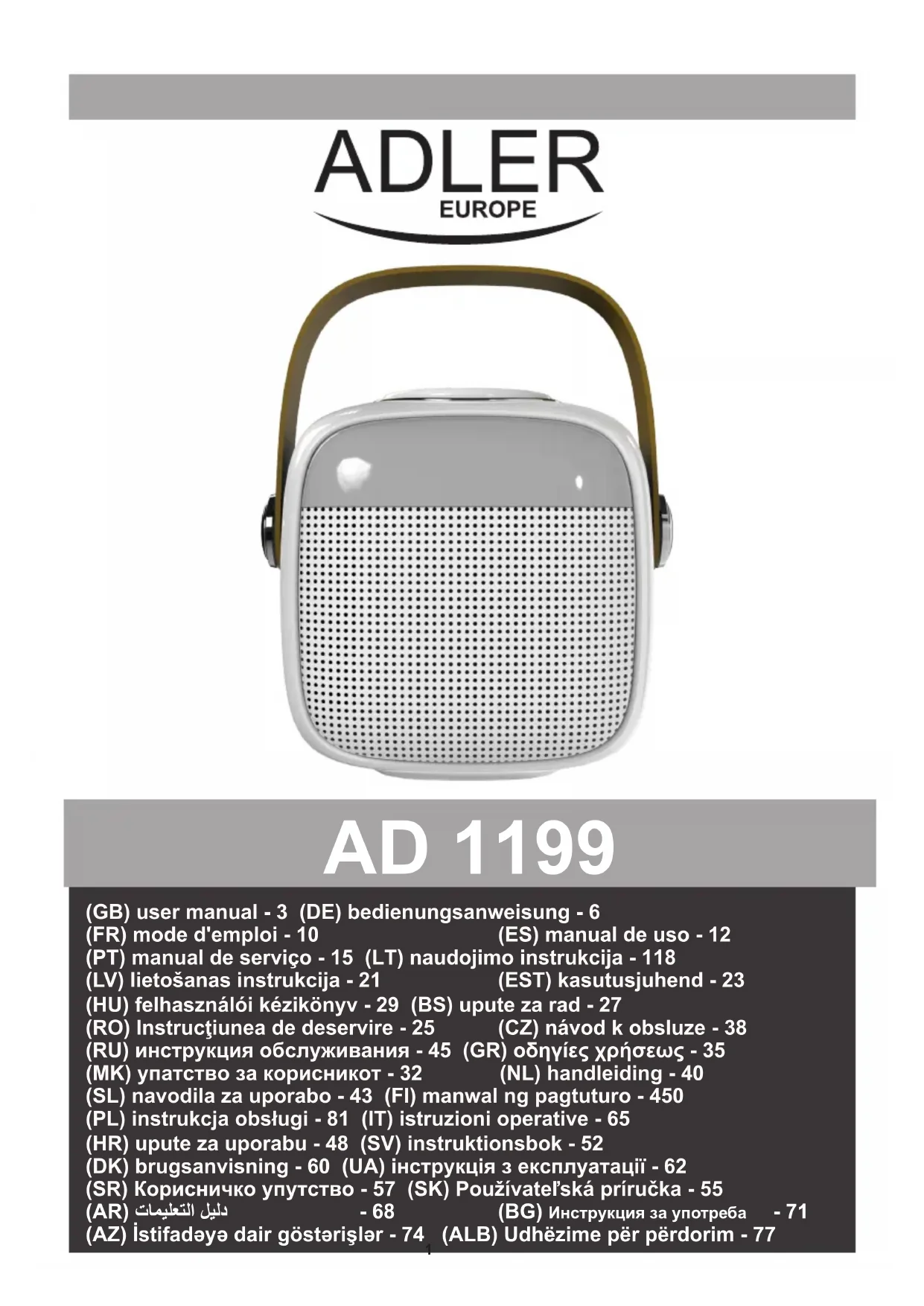 AD 1199 - Haut-parleur ADLER - Notice d'utilisation et mode d'emploi gratuit