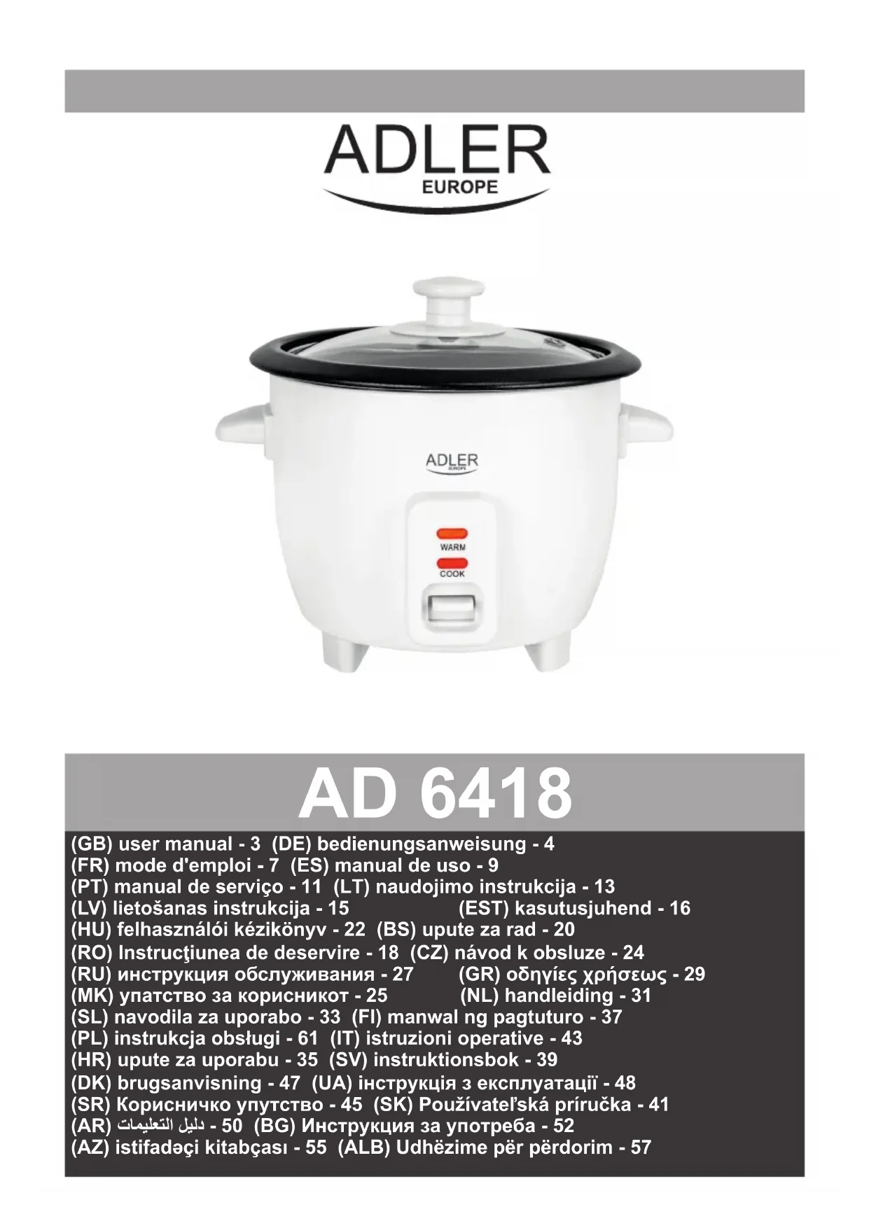 AD 6418 - Cuiseur à riz ADLER - Notice d'utilisation et mode d'emploi gratuit