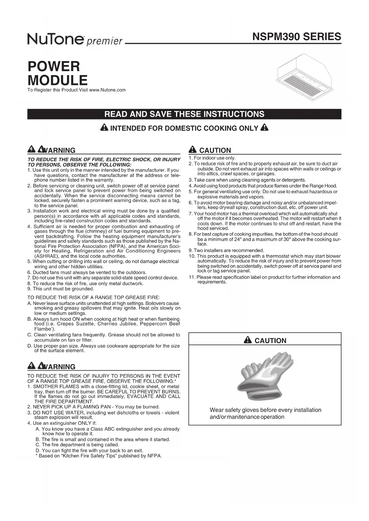 NSPM390 - Hotte NuTone - Notice d'utilisation et mode d'emploi gratuit