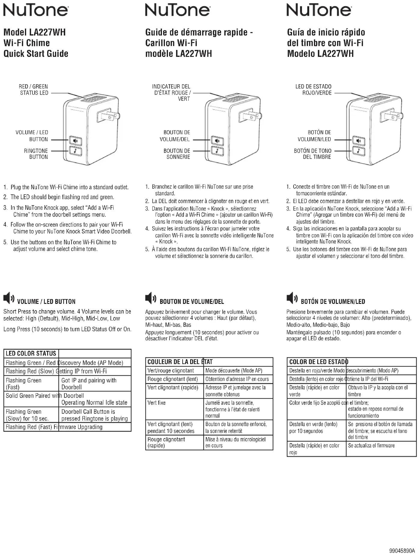 LA227WH - Sonnette de portes NuTone - Notice d'utilisation et mode d'emploi gratuit