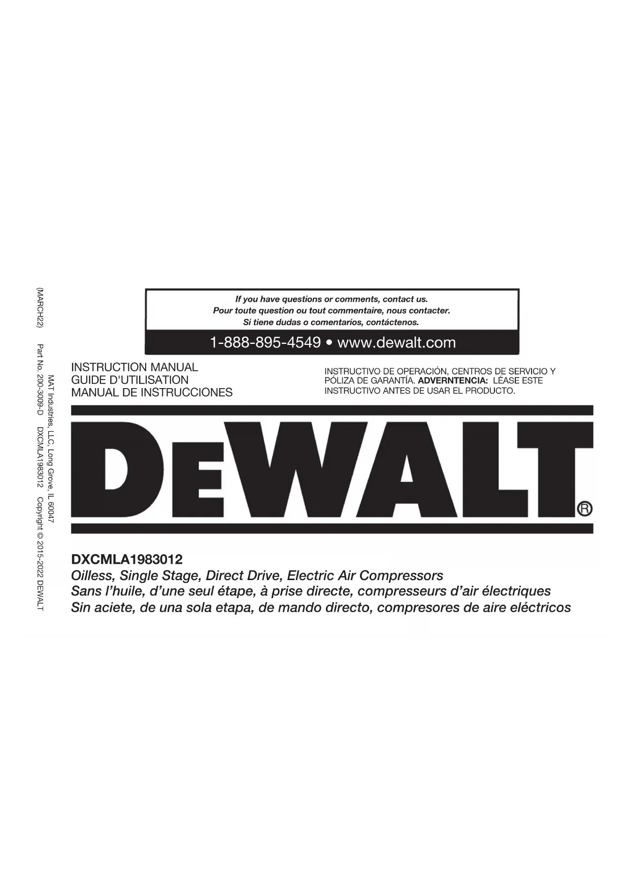 DXCMLA1983012 - Compresseur DEWALT - Notice d'utilisation et mode d'emploi gratuit
