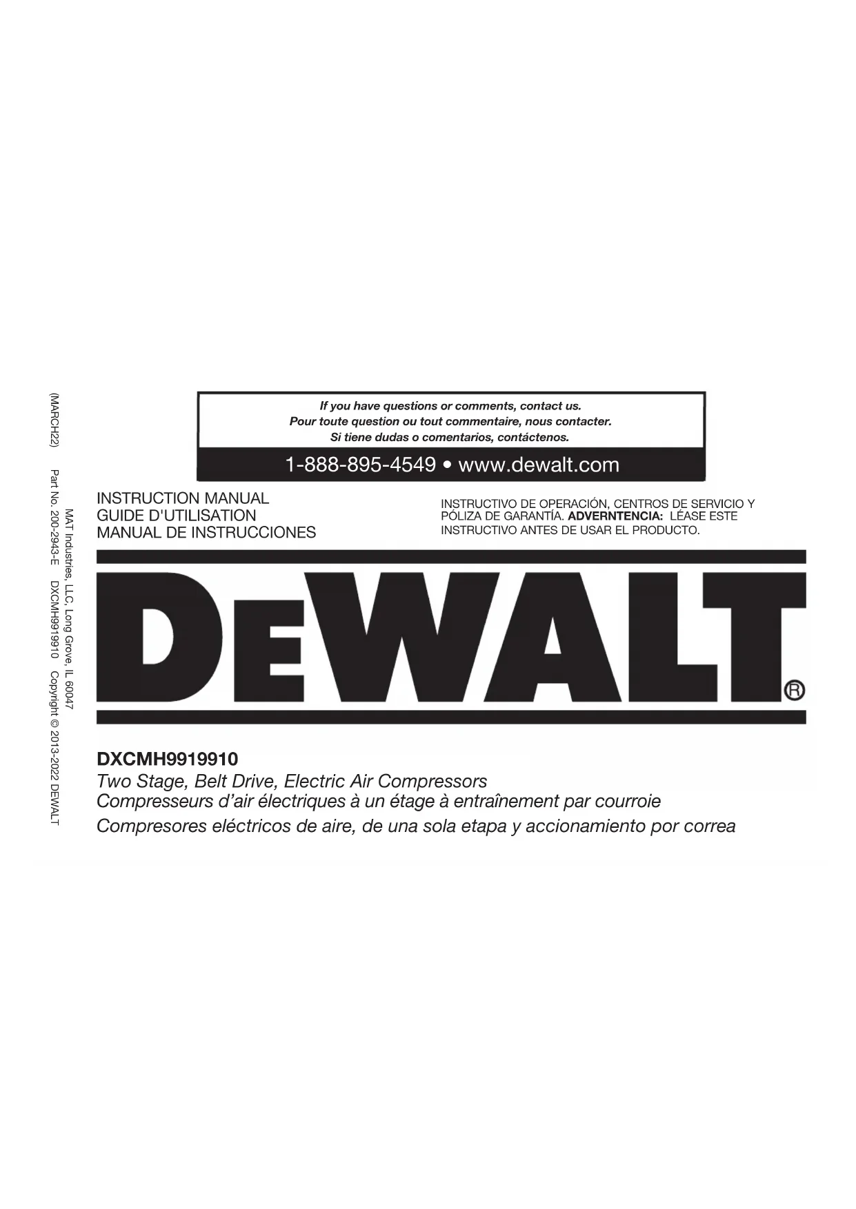 DXCMH9919910 - Compresseur DEWALT - Notice d'utilisation et mode d'emploi gratuit