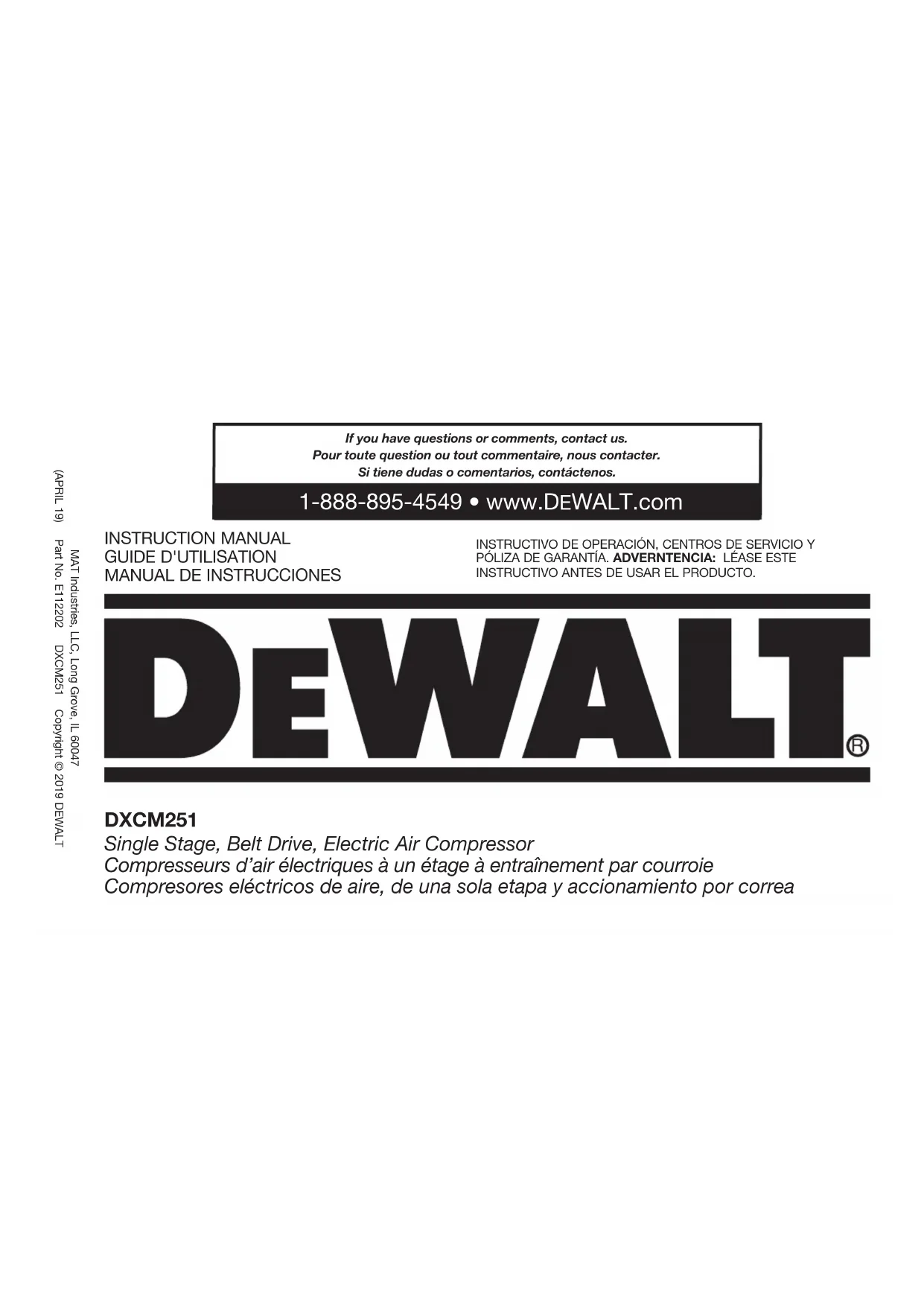 DXCM251 - Compresseur DEWALT - Notice d'utilisation et mode d'emploi gratuit